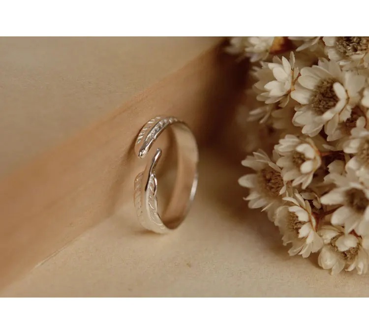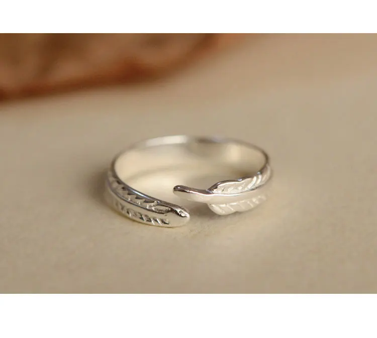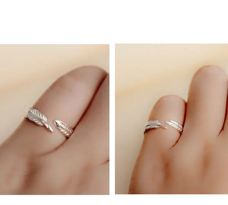 Victoria’s Vogue 925 Sterling Silver Feather Open Rings For Women Fashion Girl Sterling Silver Jewelry