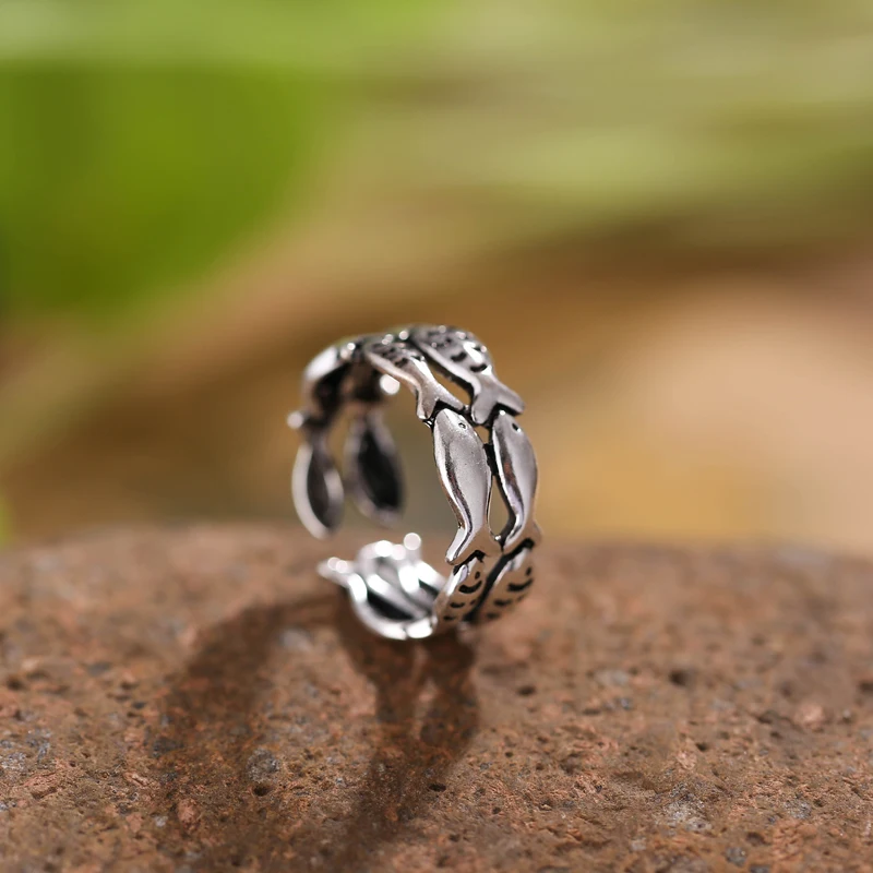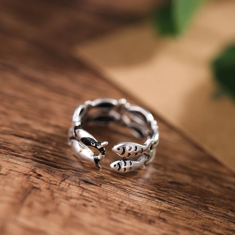 Victoria’s Vogue 925 Sterling Silver Fish Rings for Women Jewelry Fashion Open Adjustable Finger Ring Women Fashion Accessories