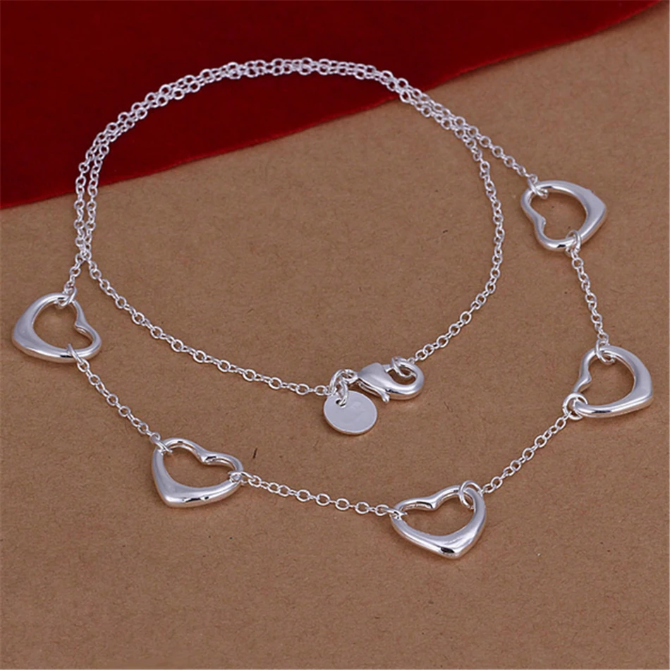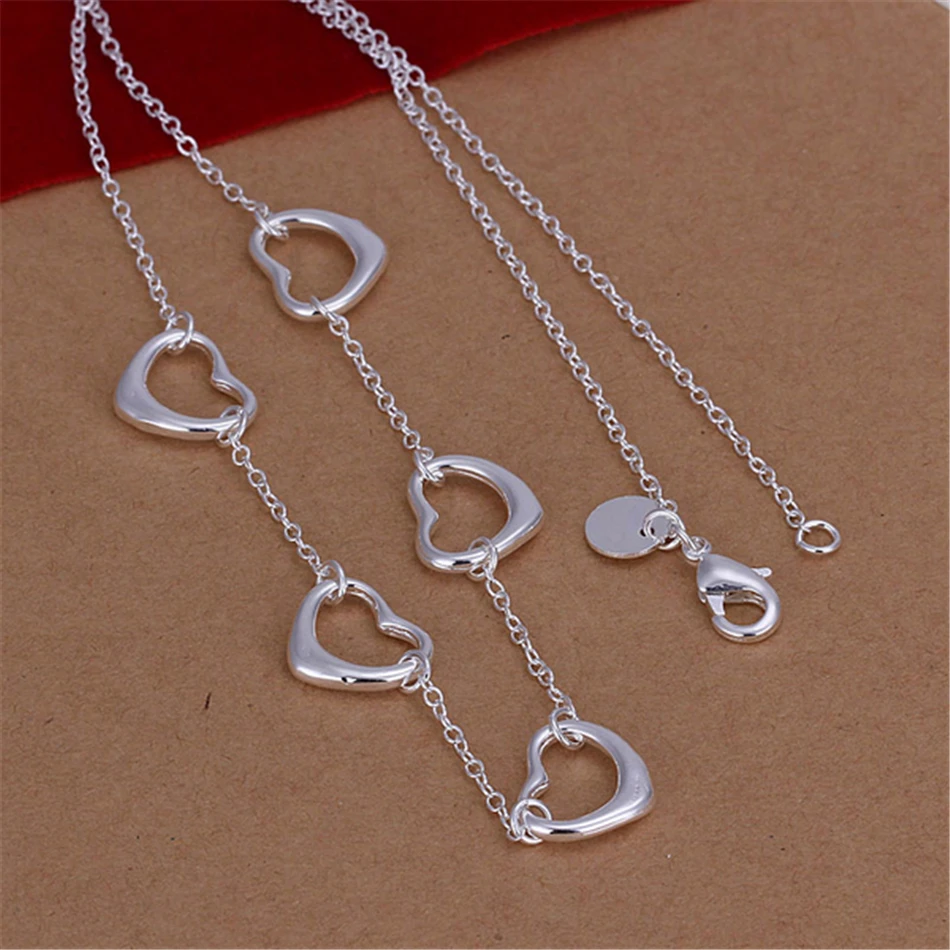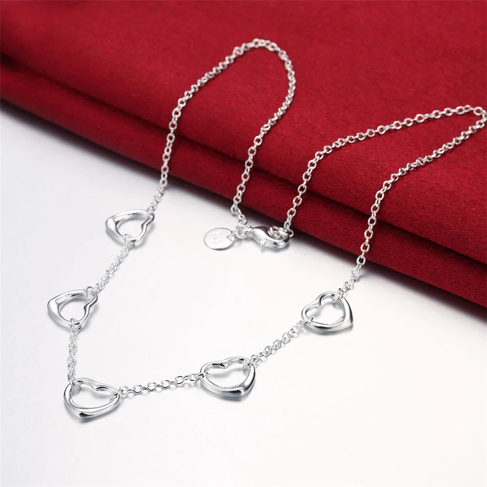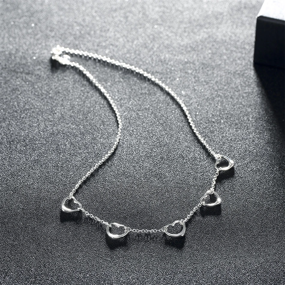 Victoria’s Vogue 925 Sterling Silver Five Heart Chain Necklace For Women Charm Wedding Engagement Party Fashion Jewelry