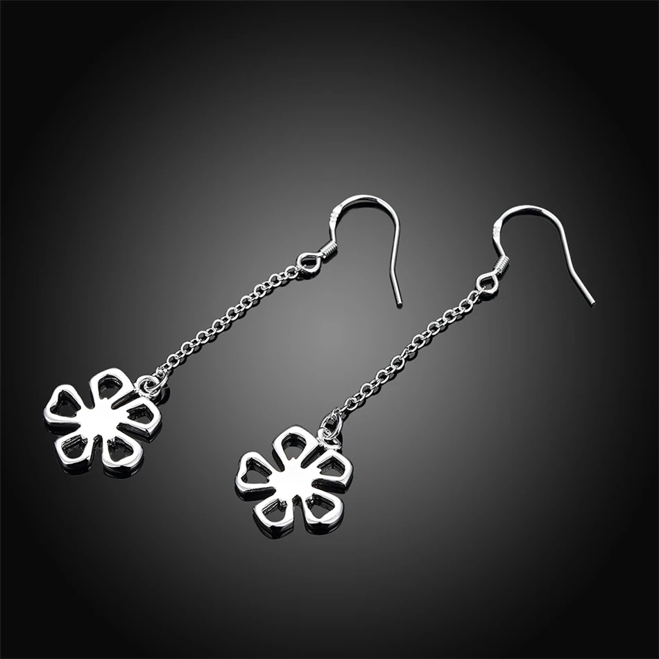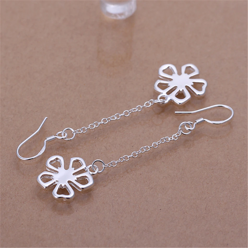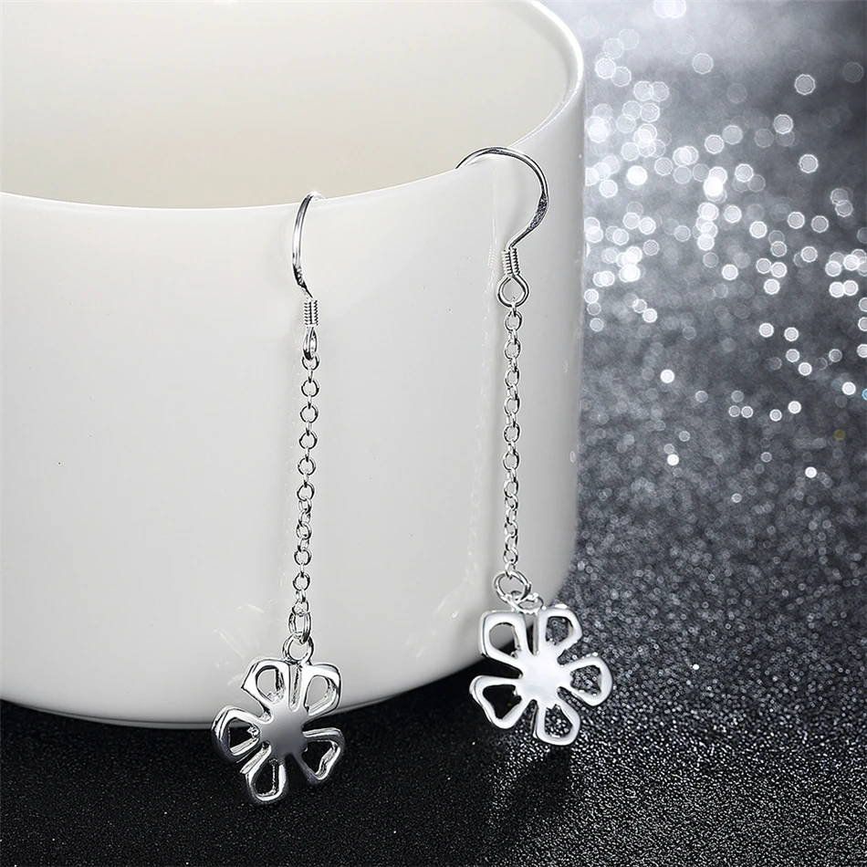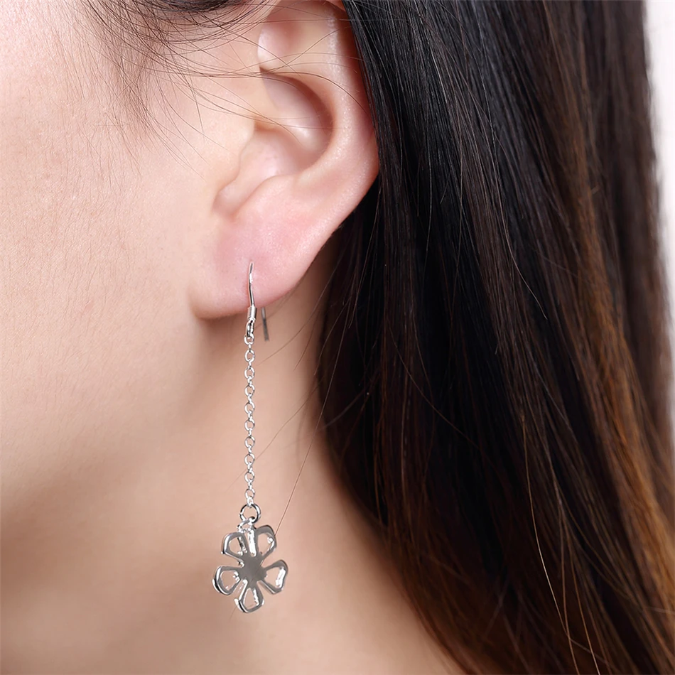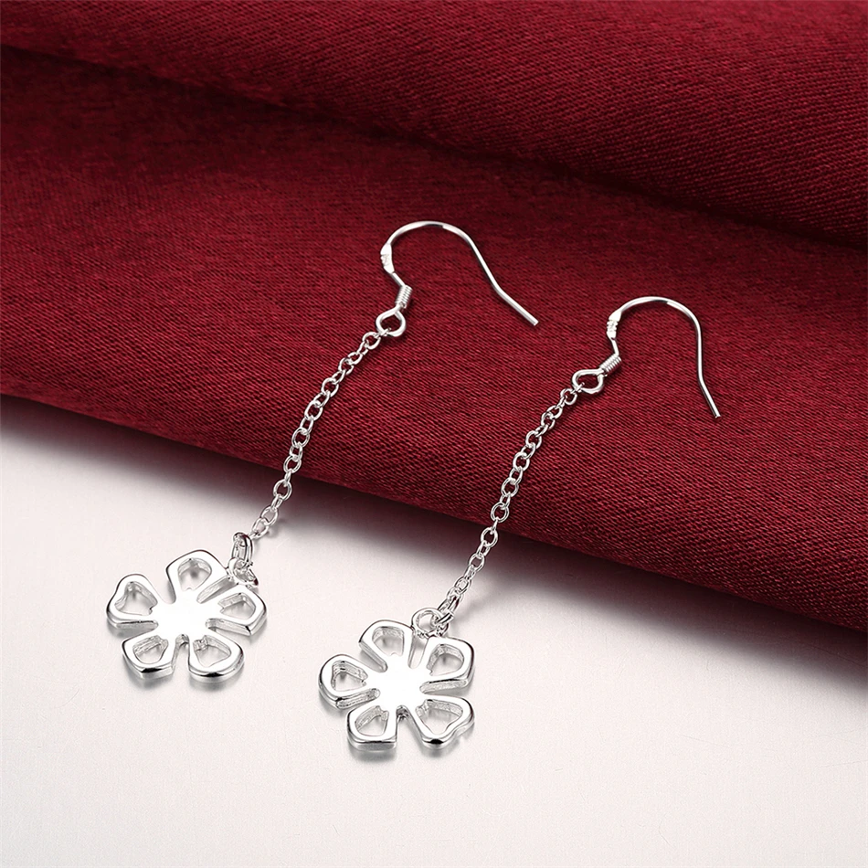 victoria’s vogue 925 Sterling Silver Flowers Long Drop Earrings For Woman Wedding Engagement Party Fashion Charm Jewelry