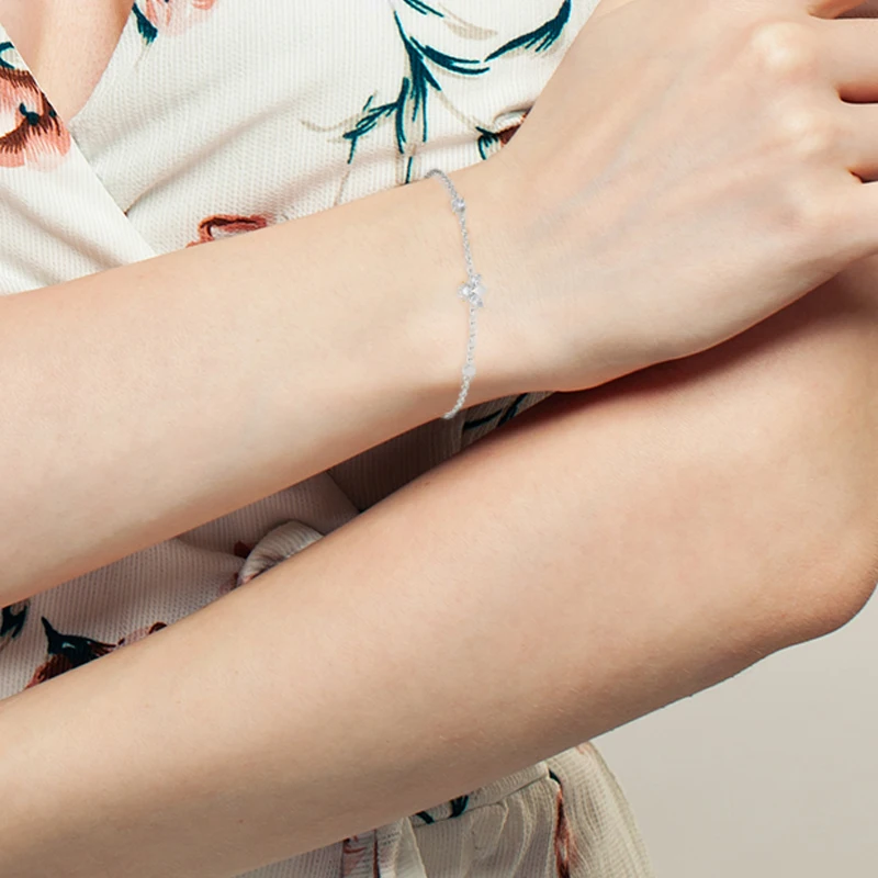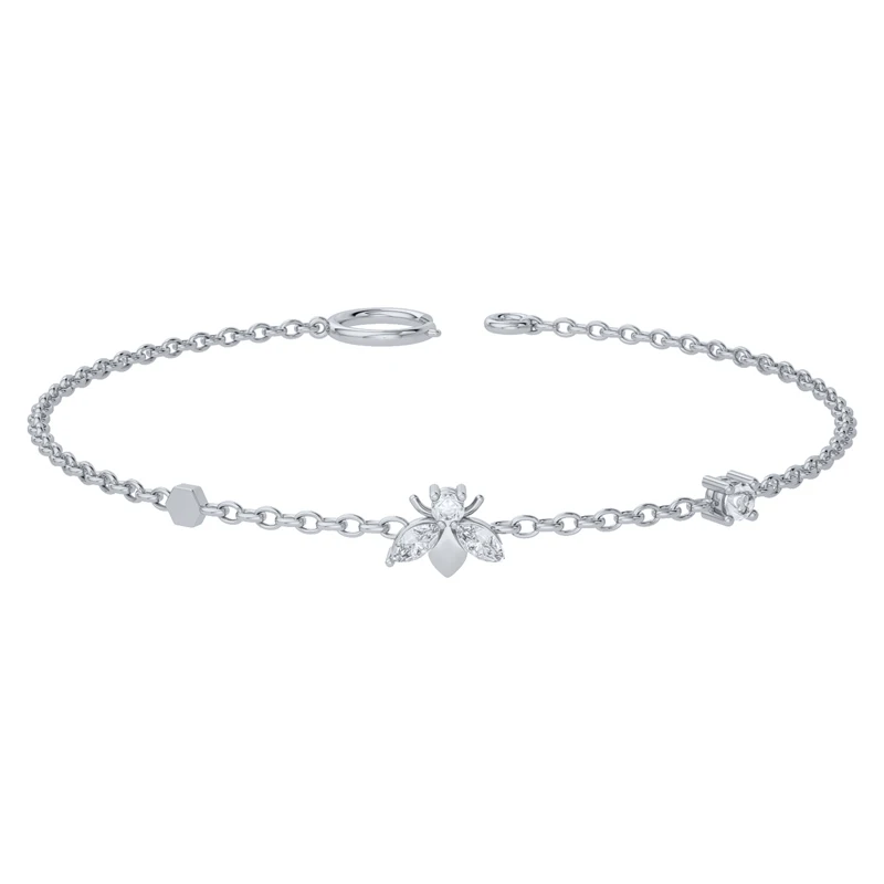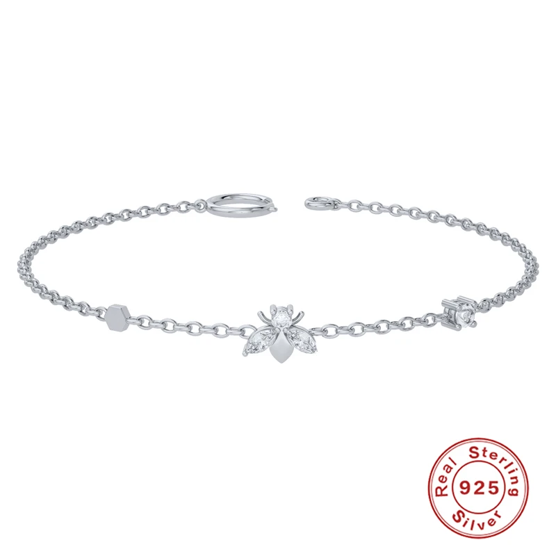 Victoria’s Vogue 925 Sterling Silver Gold Clear Bees Charm Bracelet Chain Jewelry Women Fashion CZ Zircon Simple Light Bangle Jewelry Gift