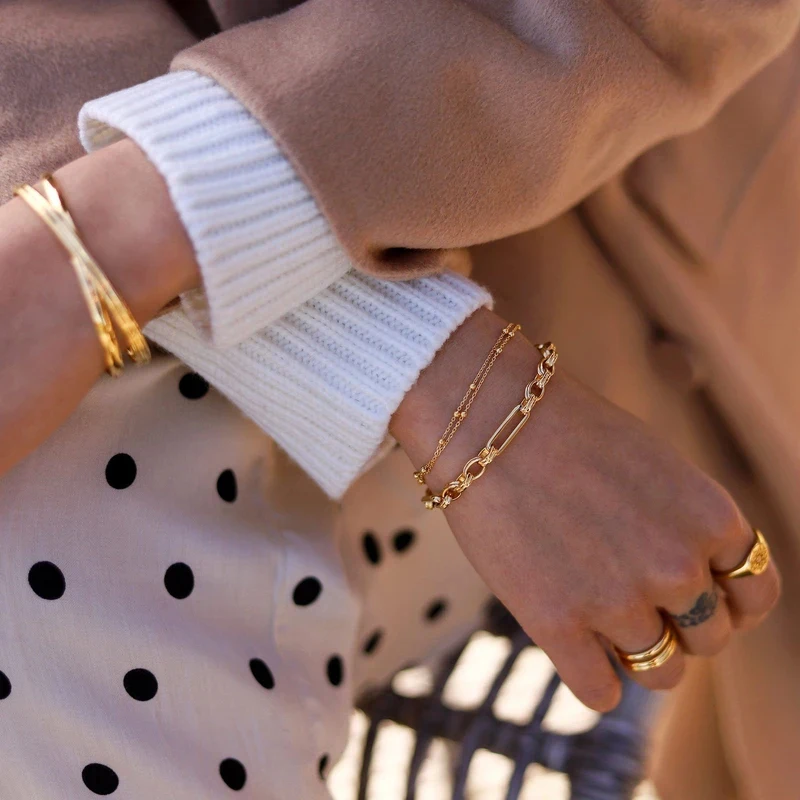 Bardzo subtelna i delikatna bransoletka. Sprawia wrażenie złotej. Niestety po kilku dniach użytkowania złota powłoka na wiszącym elemencie delikatnie się wyciera.