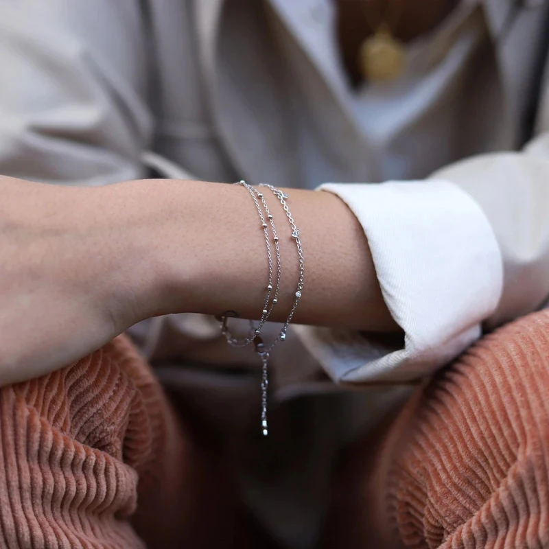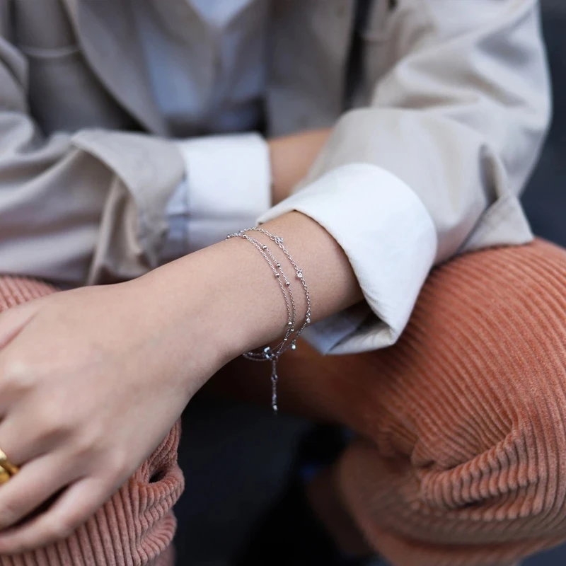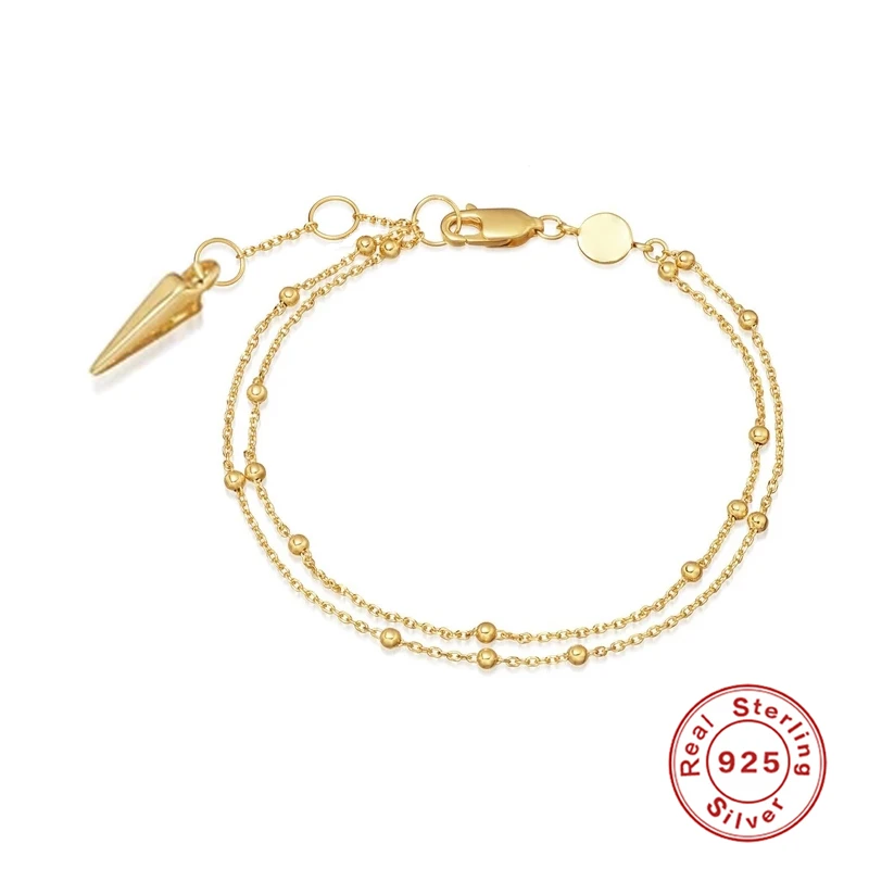 Victoria’s Vogue 925 Sterling Silver Gold Fashion Women Jewelry Double Layer Beads Bracelet For Lady Girls Gift Fine Jewelry