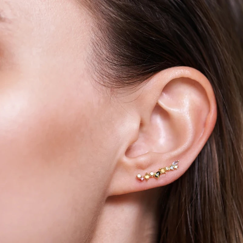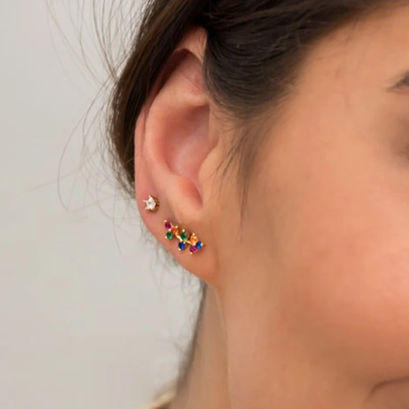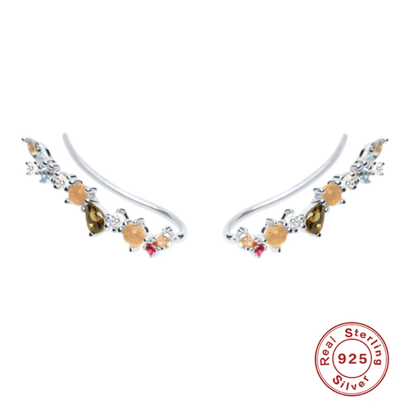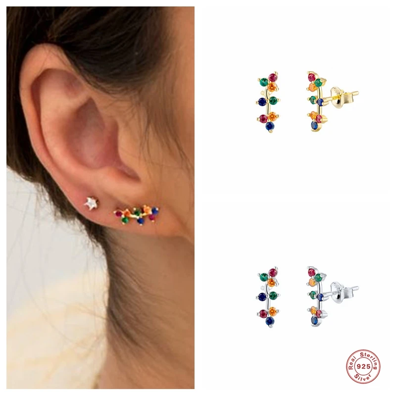victoria’s vogue 925 Sterling Silver Gold Flower Rattan Stud Earrings For Women Colorful Rainbow Zircon Ear Climber Earring Fine Jewelry