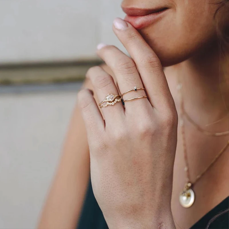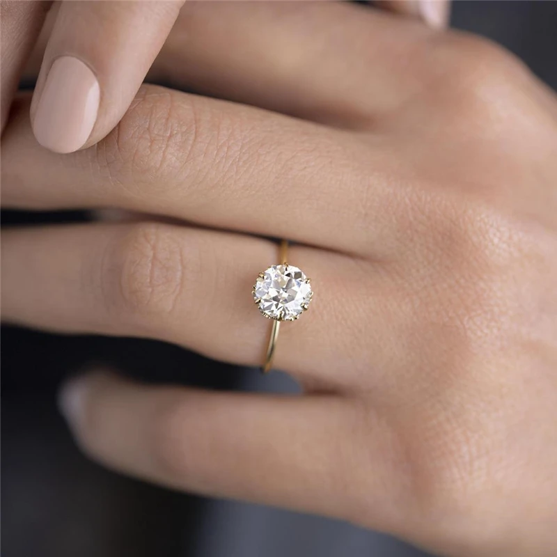 victoria’s vogue 925 Sterling Silver Gold Single Round Zircon Crystal Rings Women Cubic Zirconia Jeweled Leaf Loop Wedding Engagement Ring