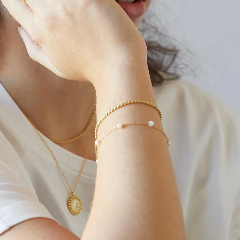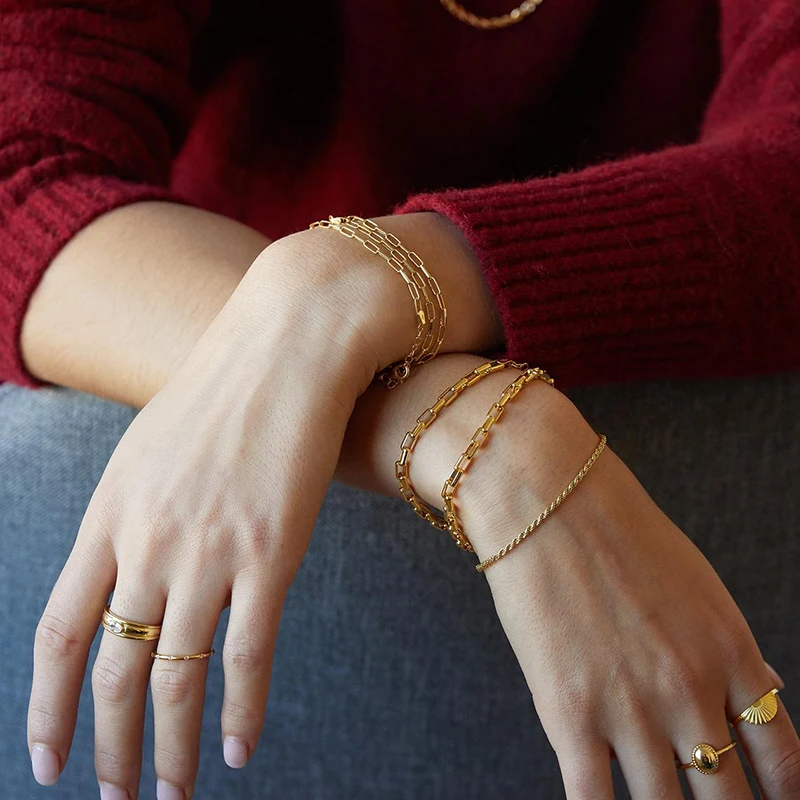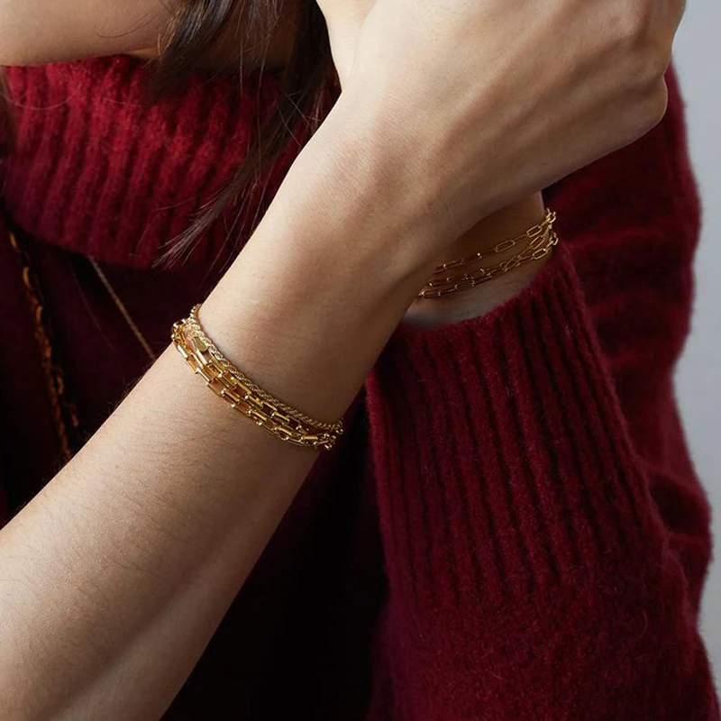 victoria’s vogue 925 Sterling Silver Gold Twist Chain Bracelet Bangle Soft New Rock Punk Luxury Minimalist Bracelets Fashion Fine Jewelry