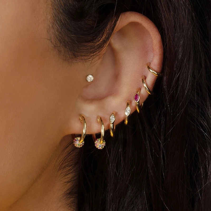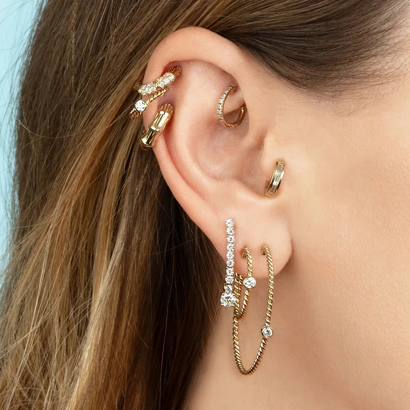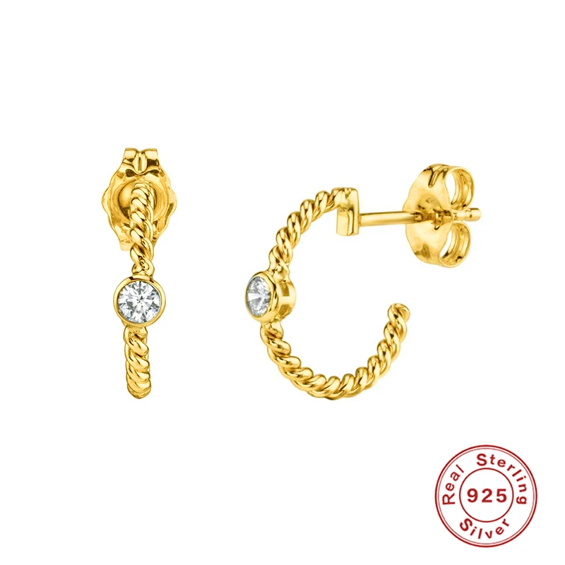 victoria’s vogue 925 Sterling Silver Gold Twist Hoop Earring With Shiny Clear Zircon Crystal Loop Circle Round Earring Punk Rock Jewelry