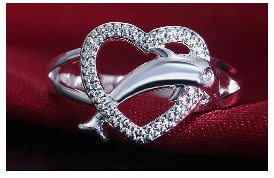 Victoria’s Vogue 925 Sterling Silver Heart-Shaped AAA Zircon Dolphin Ring For Women Fashion Wedding Party Gift Charm Jewelry