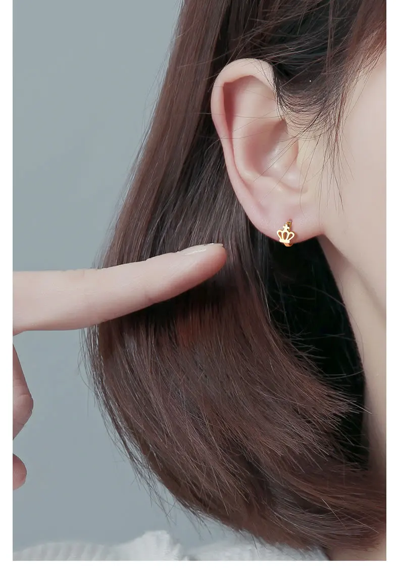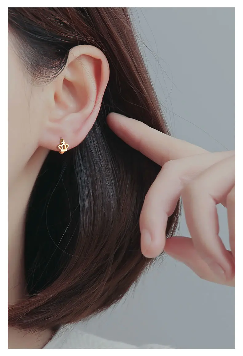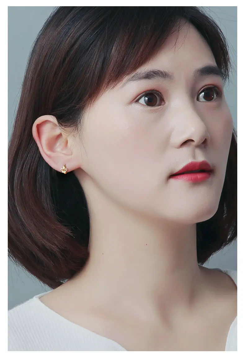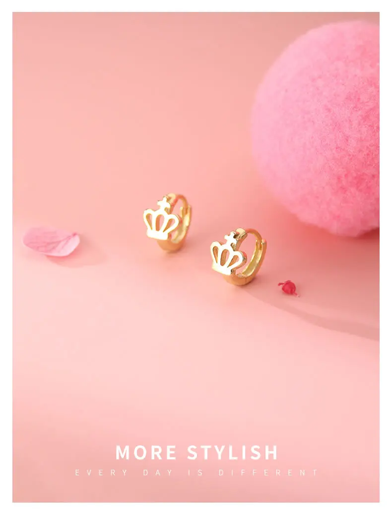 victoria’s vogue 925 Sterling Silver Hot Sale Korean Crown Earrings Simple Temperament Exquisite Hot female Sexy Jewelry Gift