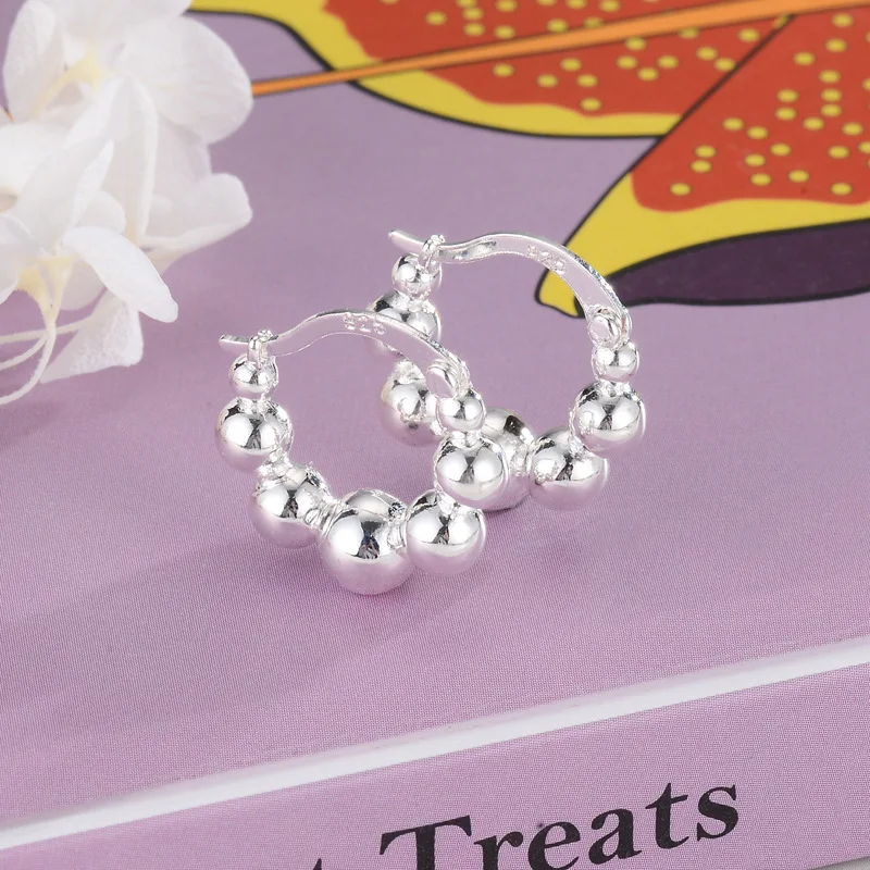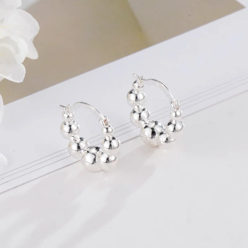 Victoria’s Vogue 925 Sterling Silver Hot Sale Korean Round Beads Earrings Simple Temperament Exquisite Hot Sexy Jewelry Gift For Women