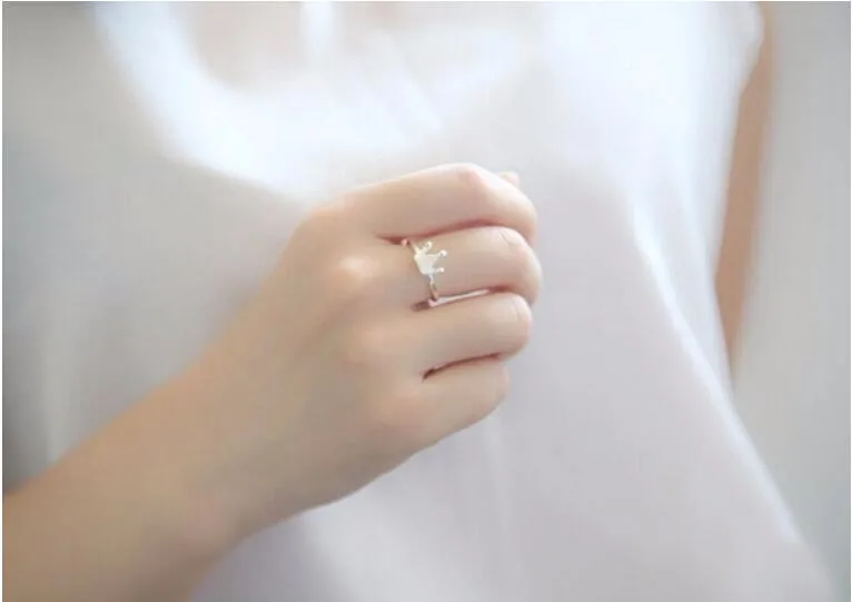 Victoria’s Vogue 925 Sterling Silver Jewelry Cute Opening Small Crown Creative Opening Rings Geometric Classic Silver Ring