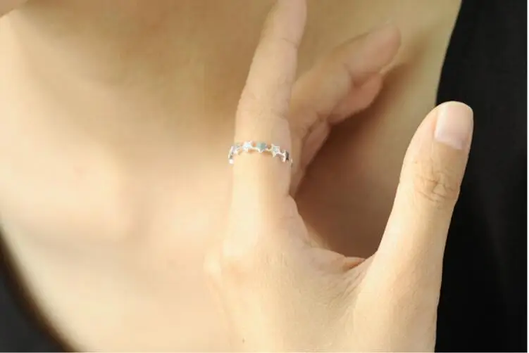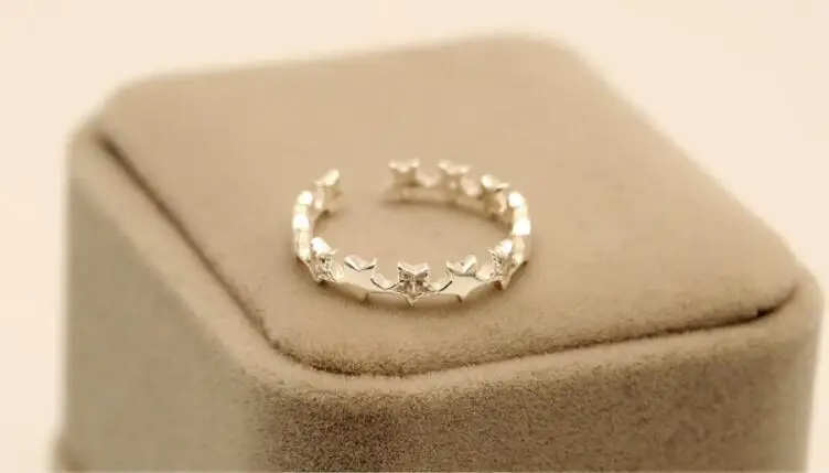 Victoria’s Vogue 925 Sterling Silver Jewelry Fashion Small Fresh Stars Crystal Prevention Simple Beautiful Opening Rings