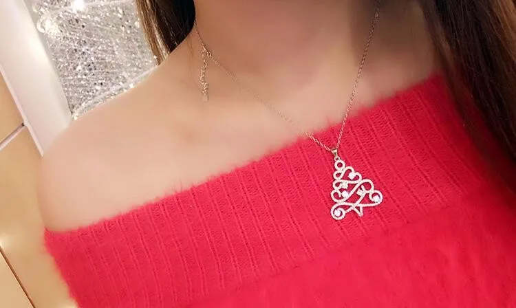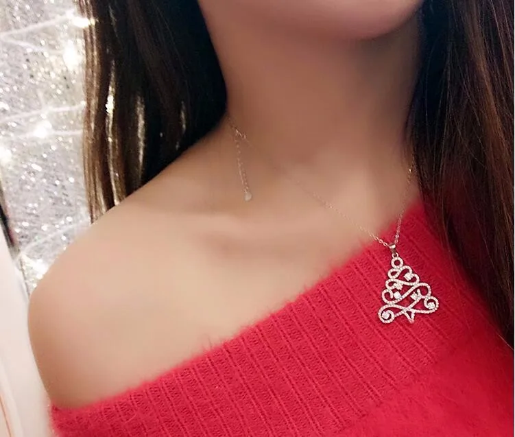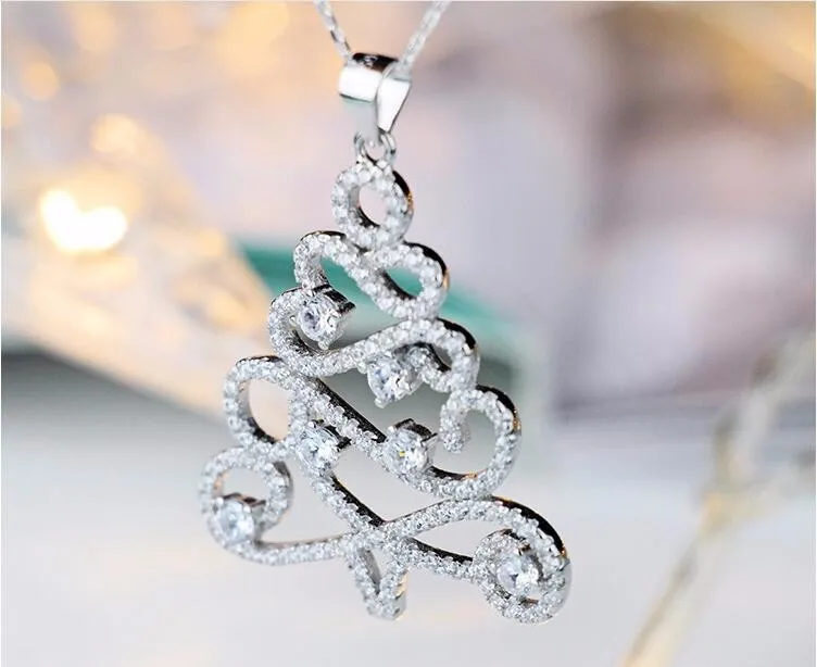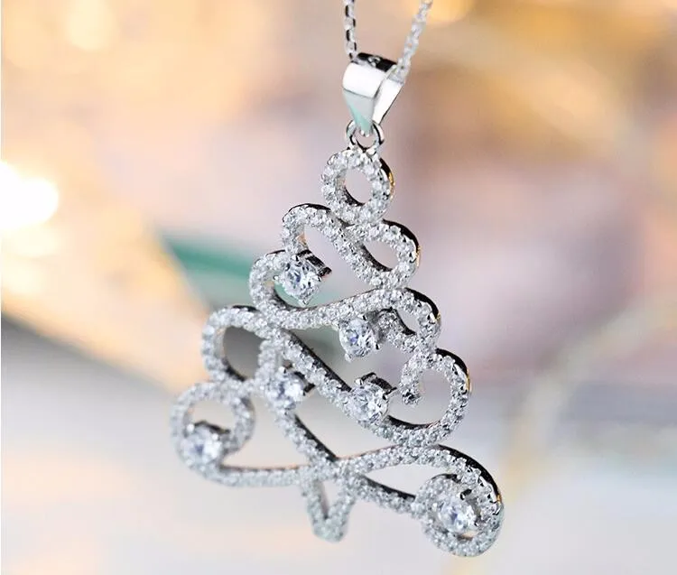 Victoria’s Vogue 925 Sterling Silver Jewelry Personality Fashion Wild Christmas Tree Micro-Set Crystal Clavicle Chain Pendant Necklaces