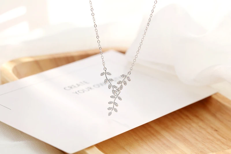 Victoria’s Vogue 925 Sterling Silver Leaves Necklaces & Pendants For Women Fashion Lady Festival Gift Sterling-Silver-Jewelry