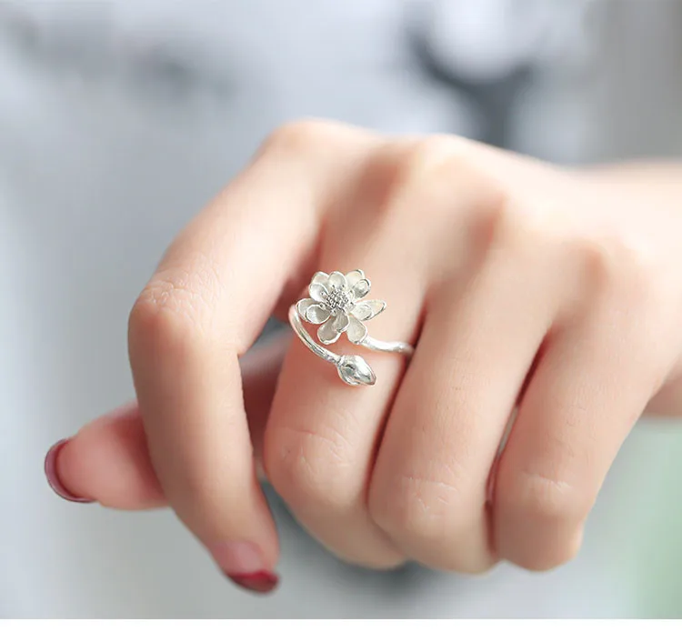 Victoria’s Vogue 925 Sterling Silver Leaves Open Rings For Women Hypoallergenic Fashion Girl Sterling-silver-jewelry