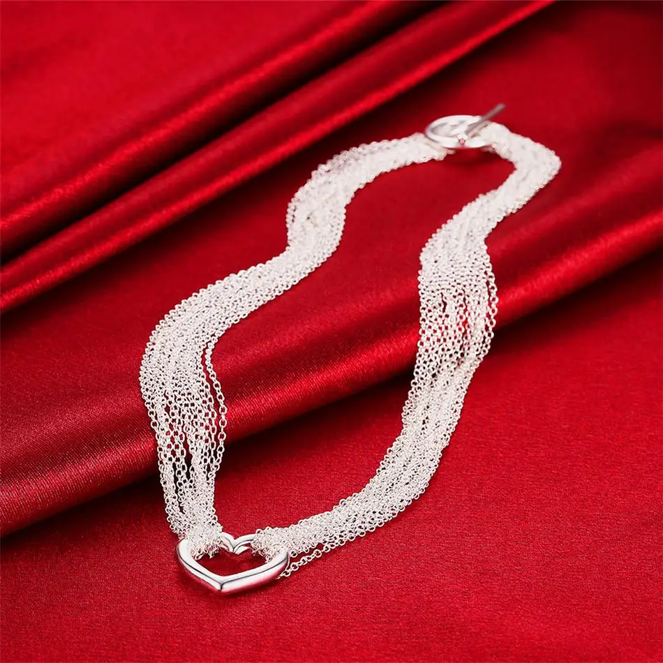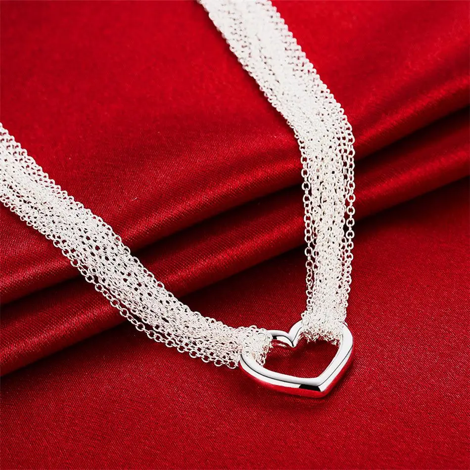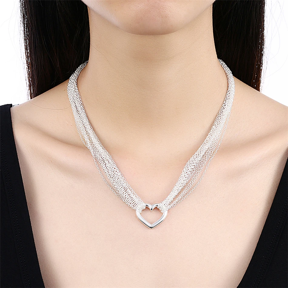 Victoria’s Vogue 925 Sterling Silver Necklaces for Women Multi Lines Heart Pendant Necklace Collier Female Fashion Jewelry