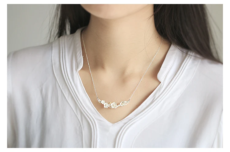 victoria’s vogue 925 Sterling Silver Necklaces Plum Flower Pendants Necklaces Jewelry Collar Colar de Plata