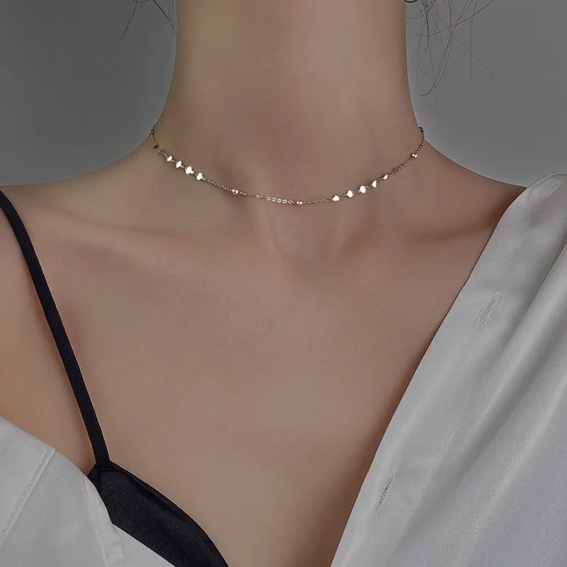 Victorias Vogue 925 Sterling Silver Peach Heart Choker Necklace Clavicle Chain Short Choker Necklace For Women Fine Jewelry Brithday Gift