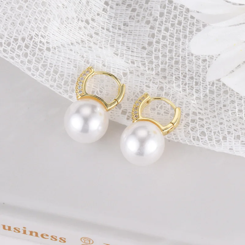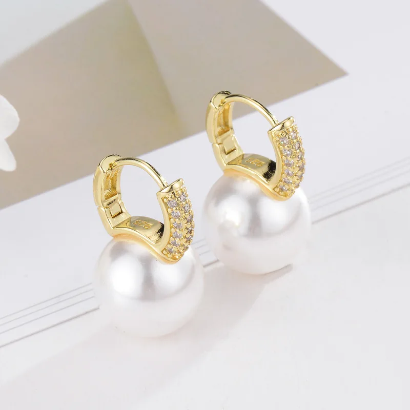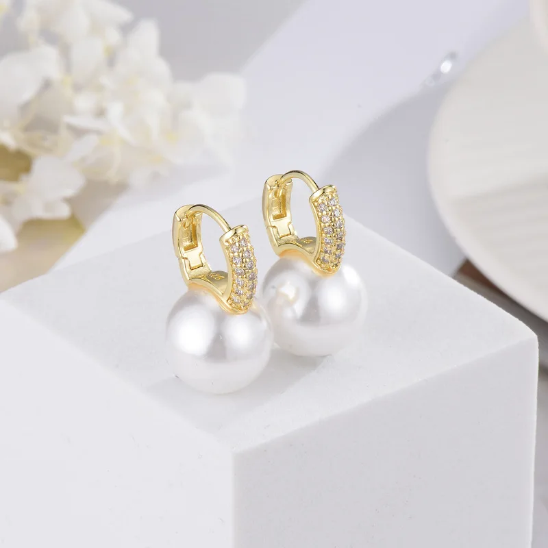 Victoria’s Vogue 925 Sterling Silver pearl Hoop Earrings for Women Shiny CZ Silver Jewelry Gifts