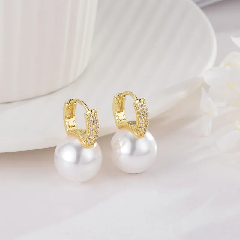Victoria’s Vogue 925 Sterling Silver pearl Hoop Earrings for Women Shiny CZ Silver Jewelry Gifts
