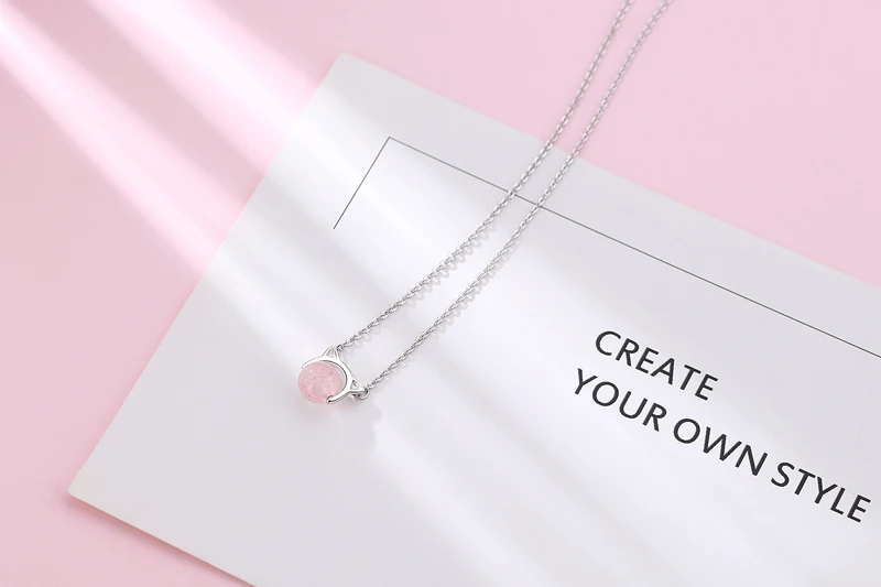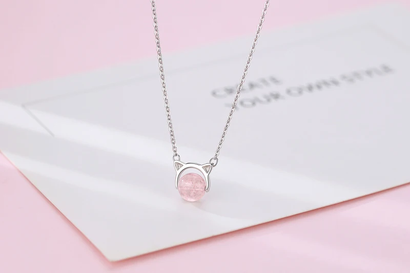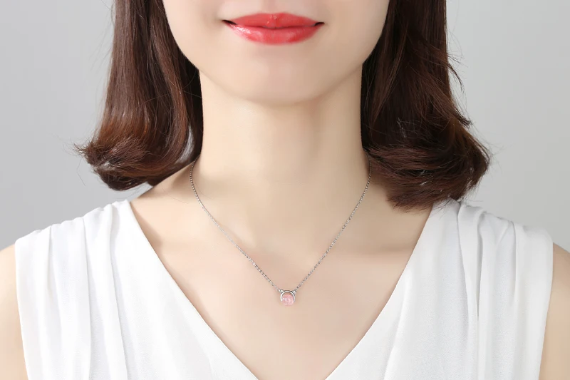 Victoria’s Vogue 925 Sterling Silver Pink Cat Zircon Necklaces & Pendants For Women Fashion Lady Festival Gift Sterling-Silver-Jewelry
