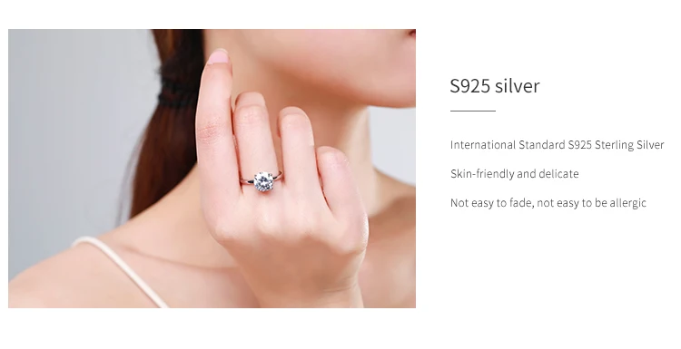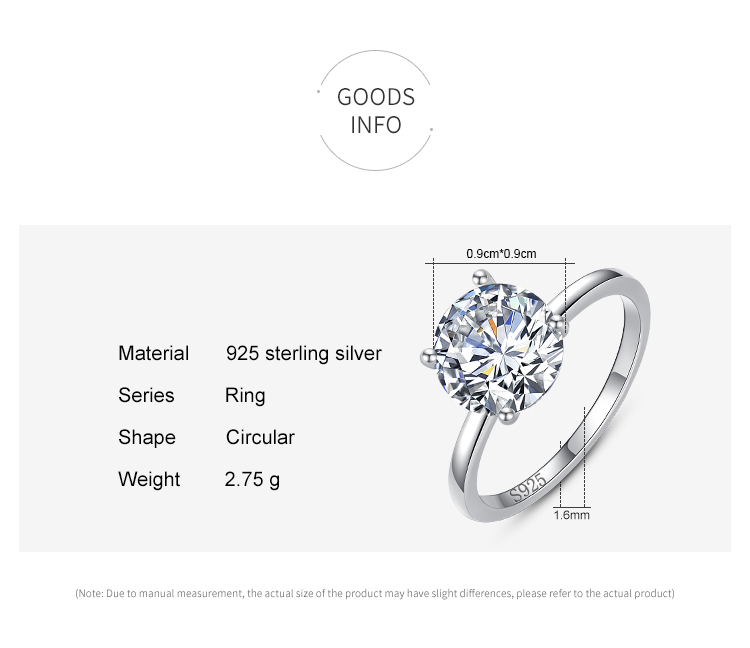 Victoria’s Vogue 925 Sterling Silver Pure Love 3ct Round Clear Zirconia Finger Ring for Women Wedding Engagement Jewelry Birthday Gift