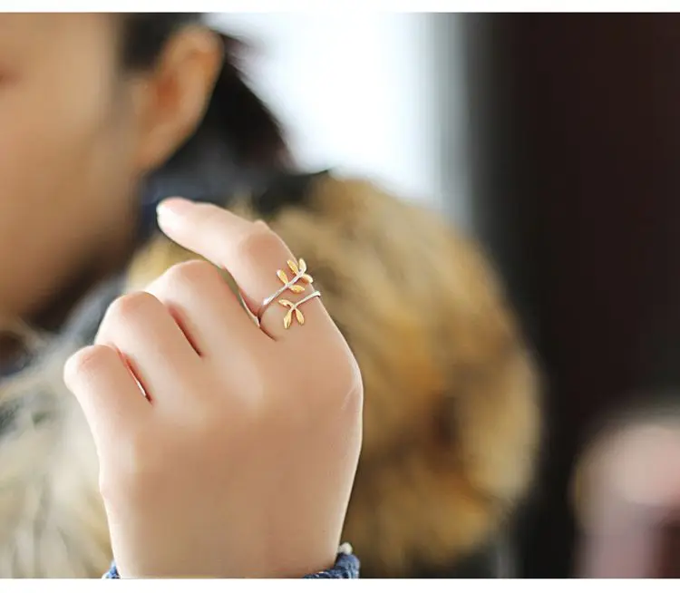 Victoria’s Vogue 925 Sterling Silver Rings For Women Leaf Gold Ring Style Lady Prevent Allergy Sterling-Silver-Jewelry