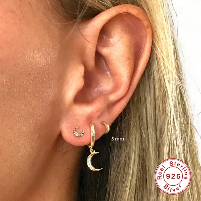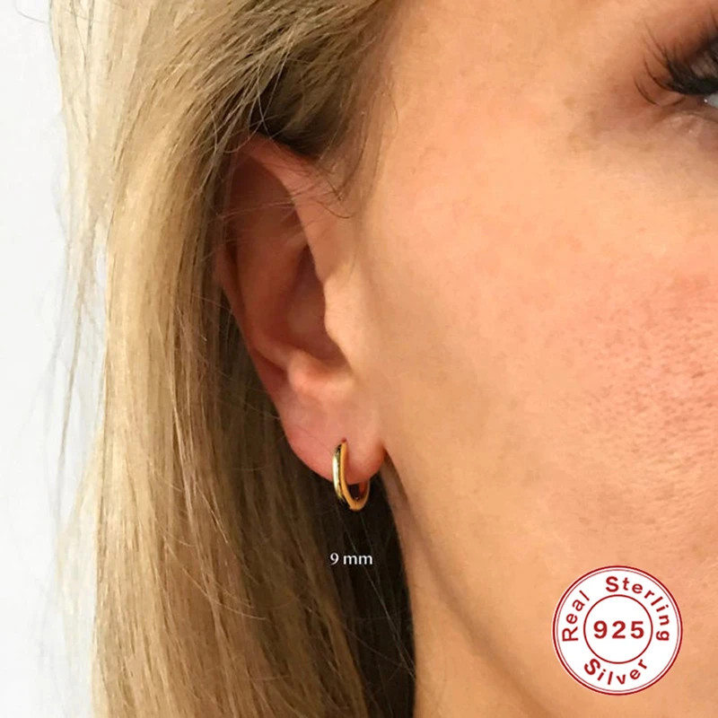 victoria’s vogue 925 Sterling Silver Rose Gold Small Hoop Earrings For Women Girls Wedding Engagement Party Gift Smooth Ear Bone Buckle