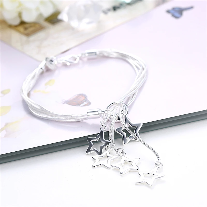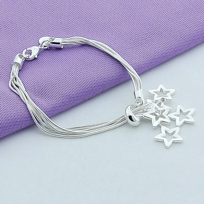 victoria’s vogue 925 Sterling Silver Snake Chain Five Star Bracelet For Woman Charm Wedding Engagement Party Fashion Jewelry