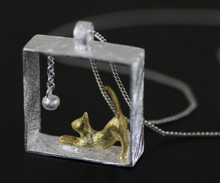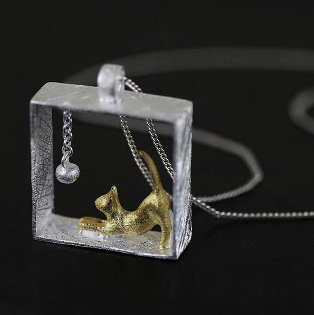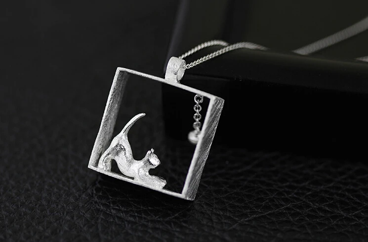 victoria’s vogue 925 Sterling Silver Square cat Necklaces & Pendants For Women High Quality Sterling-silver-jewelry