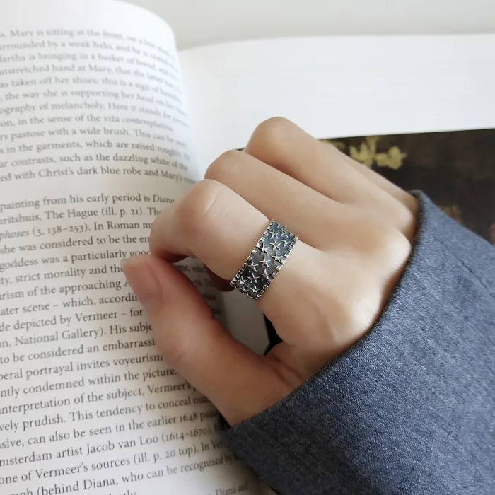 victoria’s vogue 925 Sterling Silver Star Open Rings For Women Fashion Lady Prevent Allergy Sterling-silver-jewelry Adjustable Finger Ring
