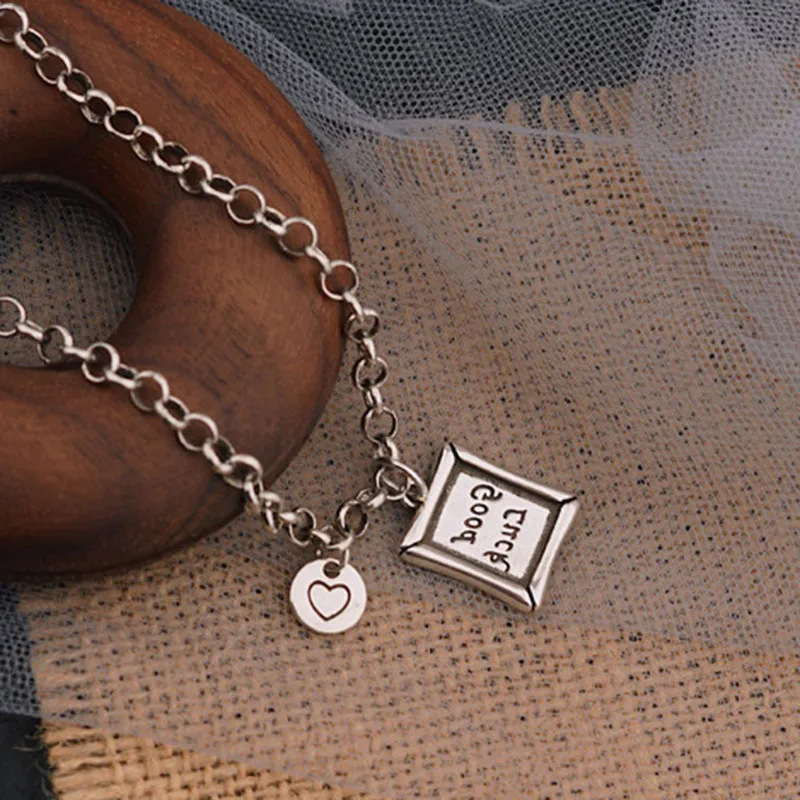 Victoria’s Vogue 925 Sterling Silver Sweater Necklace Trend Punk Hip Hop Vintage Simple Good Luck Pendant Thick Chain Party Jewelry Gifts