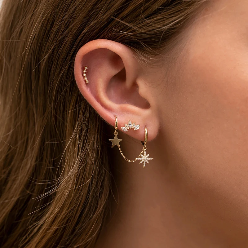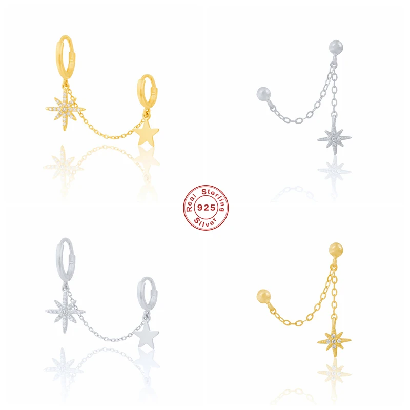 victoria’s vogue 925 Sterling Silver Two Circle Hoop Earrings For Women Zircon Star Pendant Chain Tassel Double Huggie Earring Party Jewelry