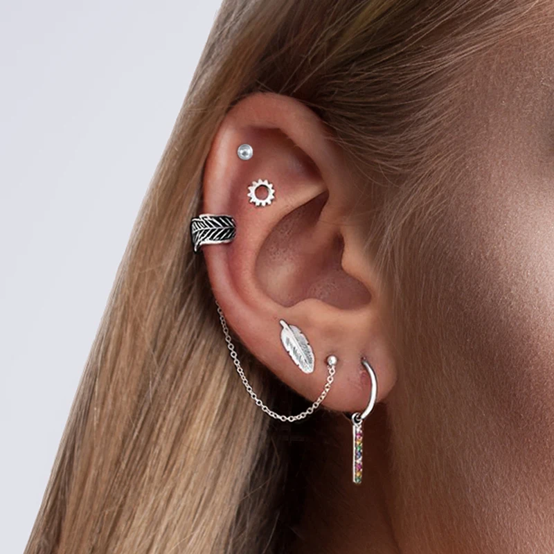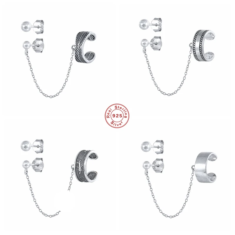 Victoria’s Vogue 925 Sterling Silver Vintage Bohemia Ethnic Style Chain Ear Cuffs Mismatched Clip Earrings For Women Jewelry