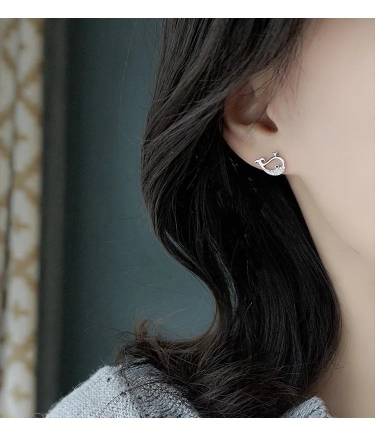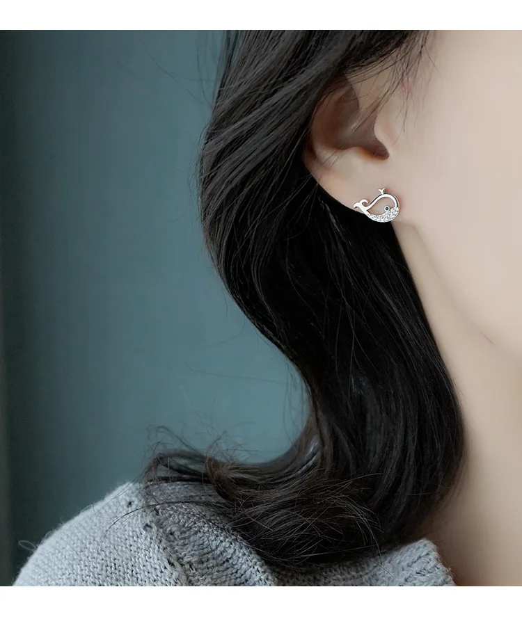 victoria’s vogue 925 Sterling Silver whale Earrings Women Simple Fashion Wedding Jewelry Accessories