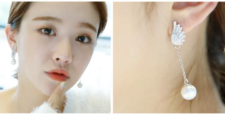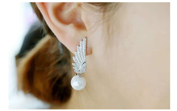 victoria’s vogue 925 Sterling Silver Wings Pearl Earrings For Women Crystal Process Elegant Lady Sterling silver jewelry Free Shipping