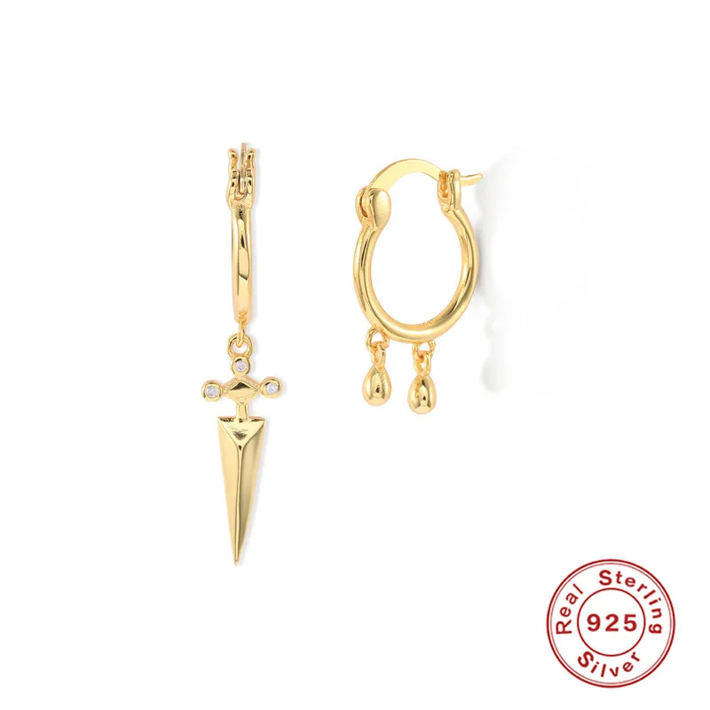 victoria’s vogue 925 Sterling Silver Zircon Cross Dagger Sword Charm Dangle Earrings For Women Mismatched Pedant Earrings Rock Punk Jewelry