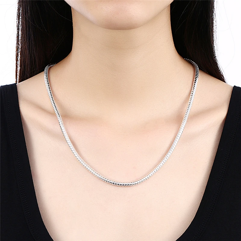 Victoria’s Vogue 925 Sterling Solid Silver 4mm 18/20/24 Inch Snake Chain Necklace For Woman Man Fashion Wedding Engagement Party Jewelry