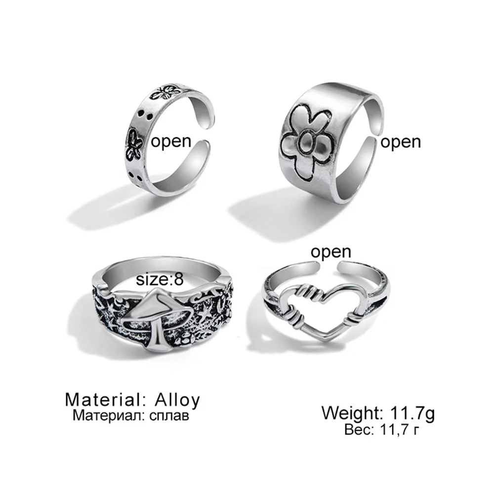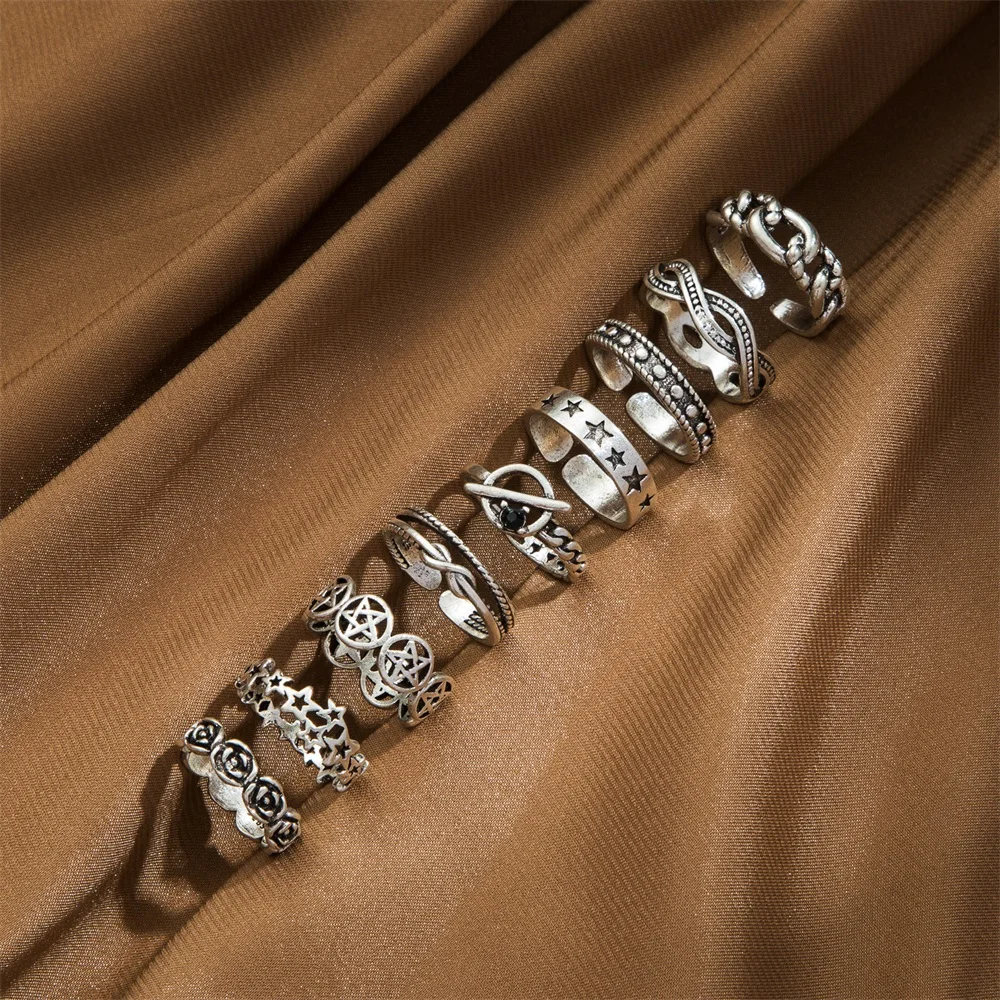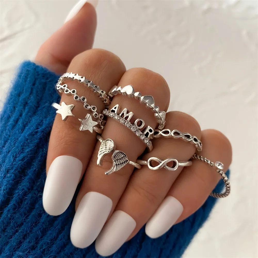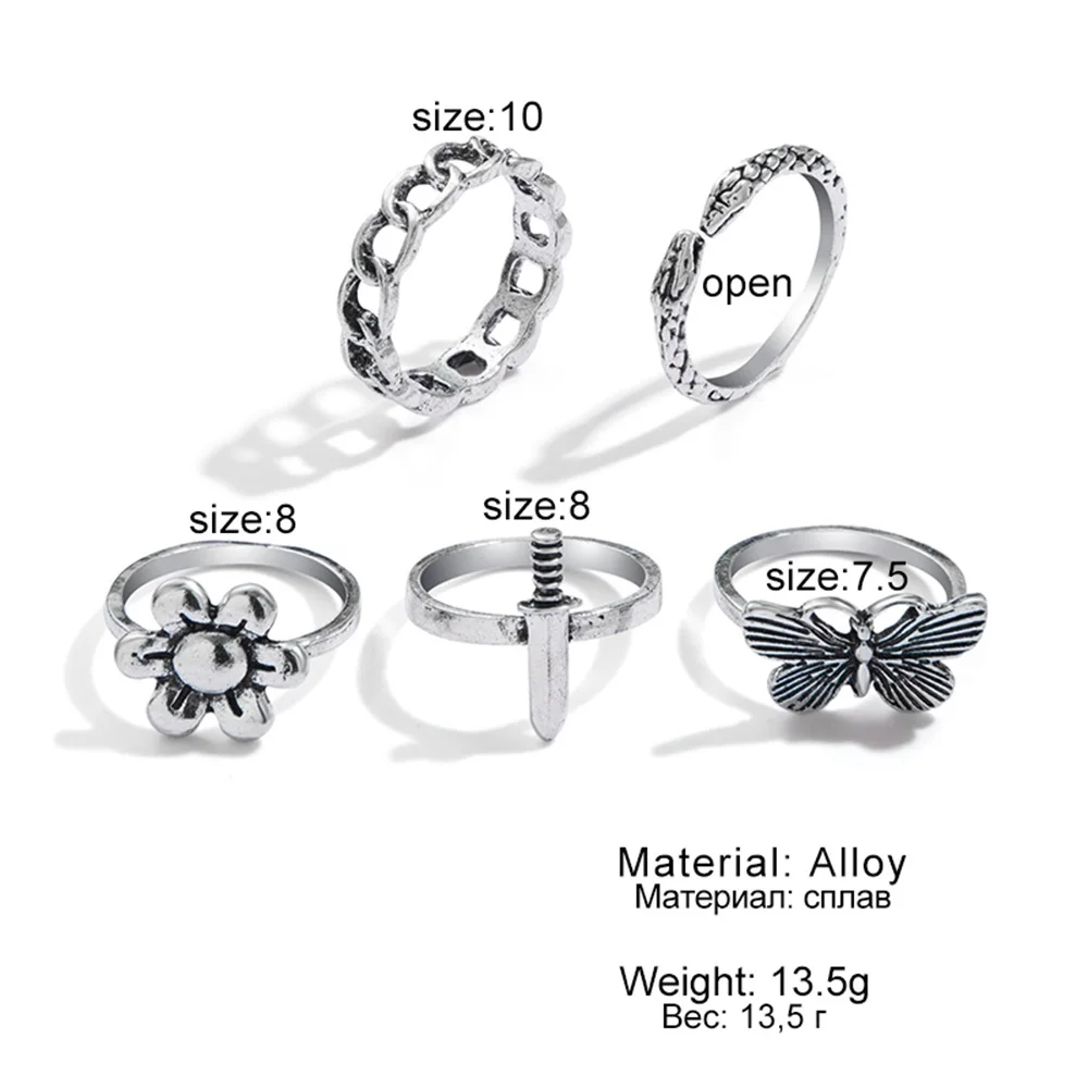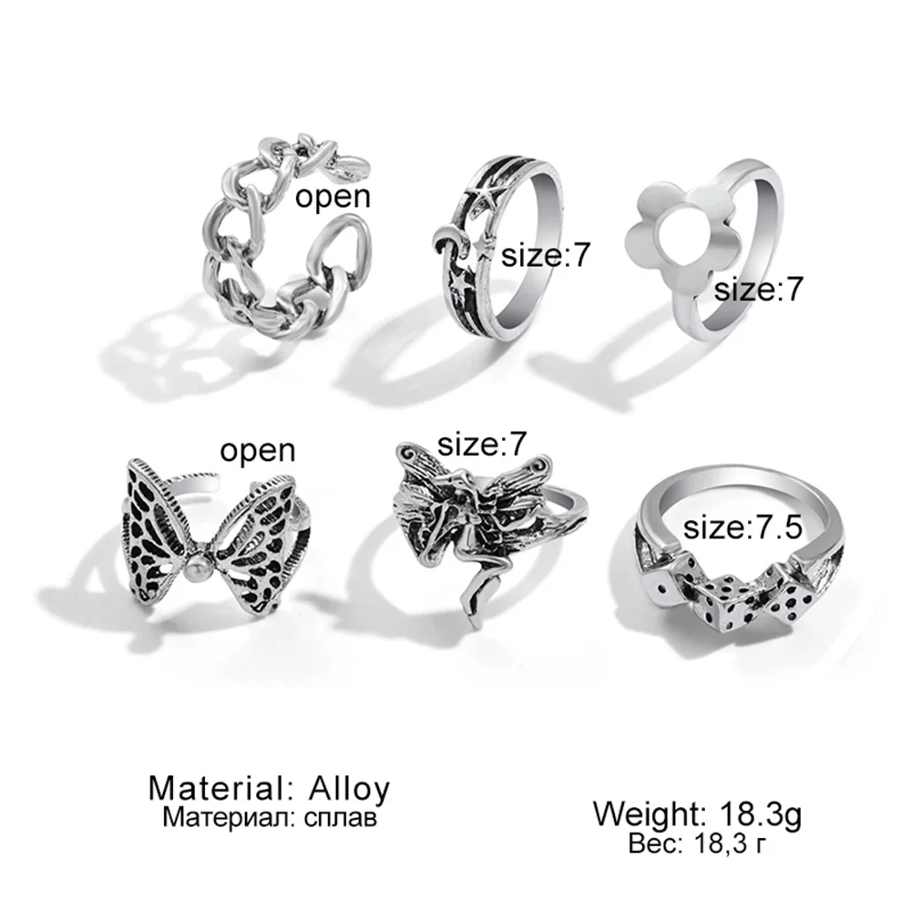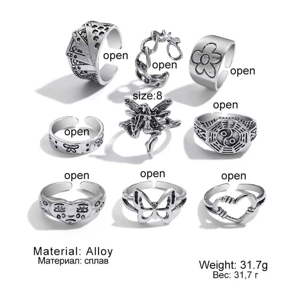 victoria’s vogue 9Pcs Vintage Gothic Butterfly Angle Flower Multi Element Ring Set For Women Men Retro Personality Finger Ring Gifts