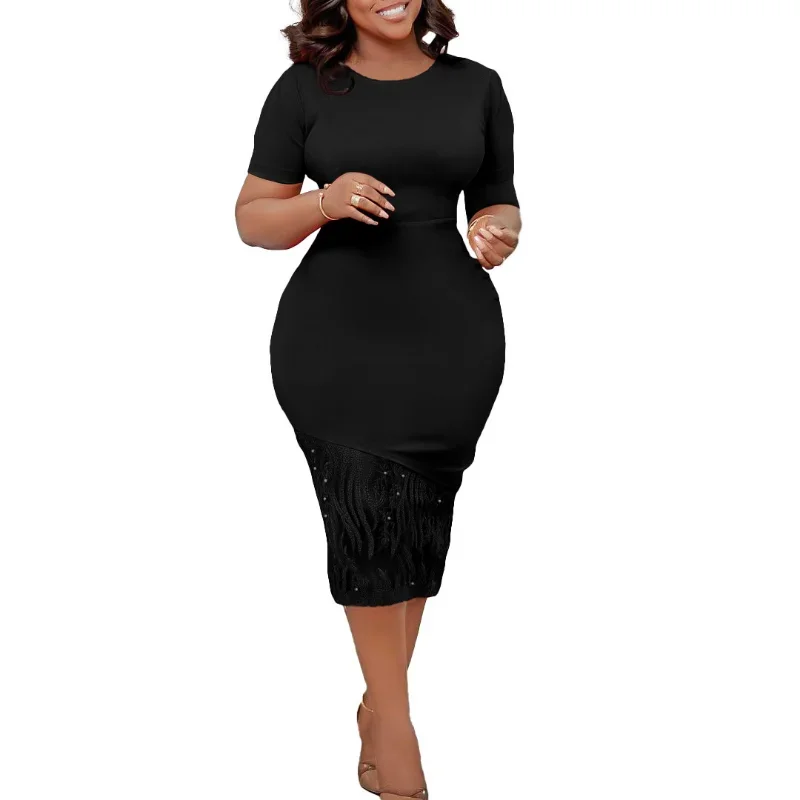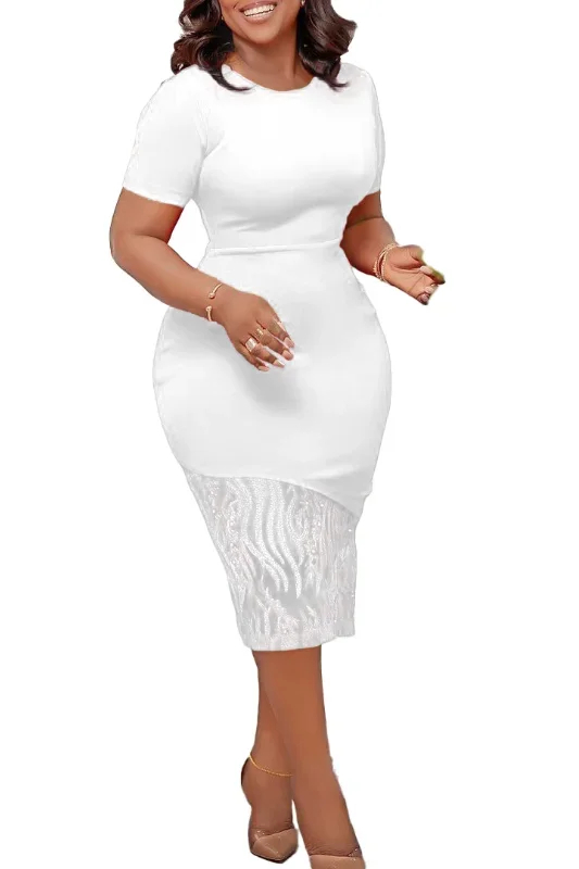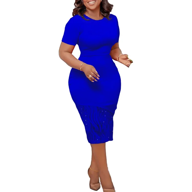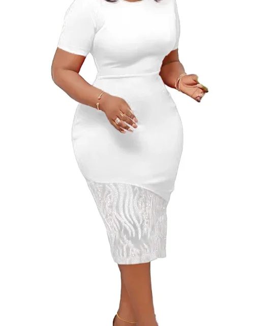Victoria’s Vogue African Dresses For Women Dashiki Summer O Neck Sexy Lace Short Sleeve Vestidos Fashion Casual Female Midi Pencil Dress 2023