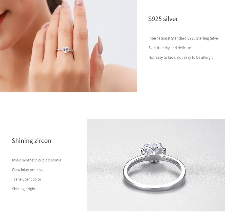 Victoria’s Vogue Authentic 925 Sterling Silver Simple Flowers & Leaves Sparkling Clear Zircon Finger Rings Fine Female Fashion Jewelry 925 Sterling Silver Forever Love Dazzling Shiny Heart CZ Finger Ring For Women Wedding Engagement Fine Female Jewelry