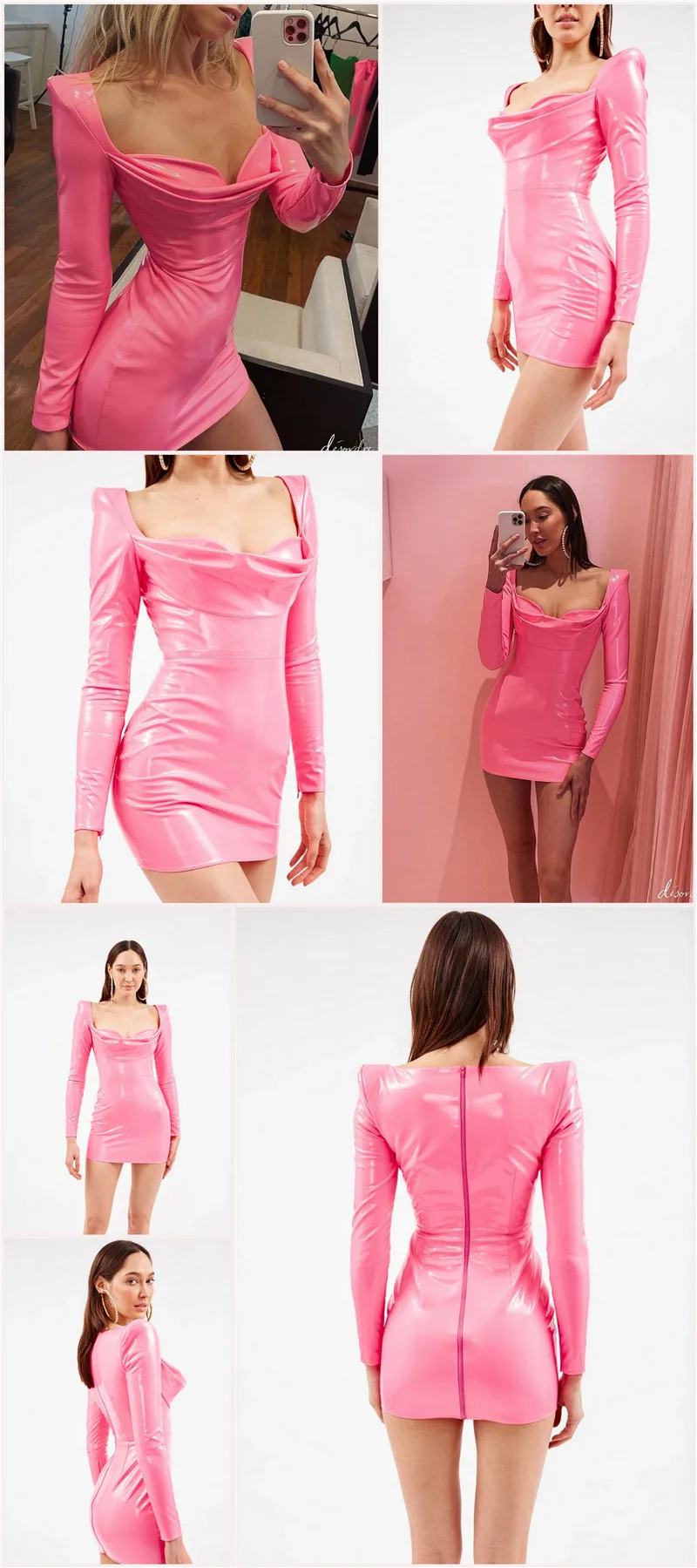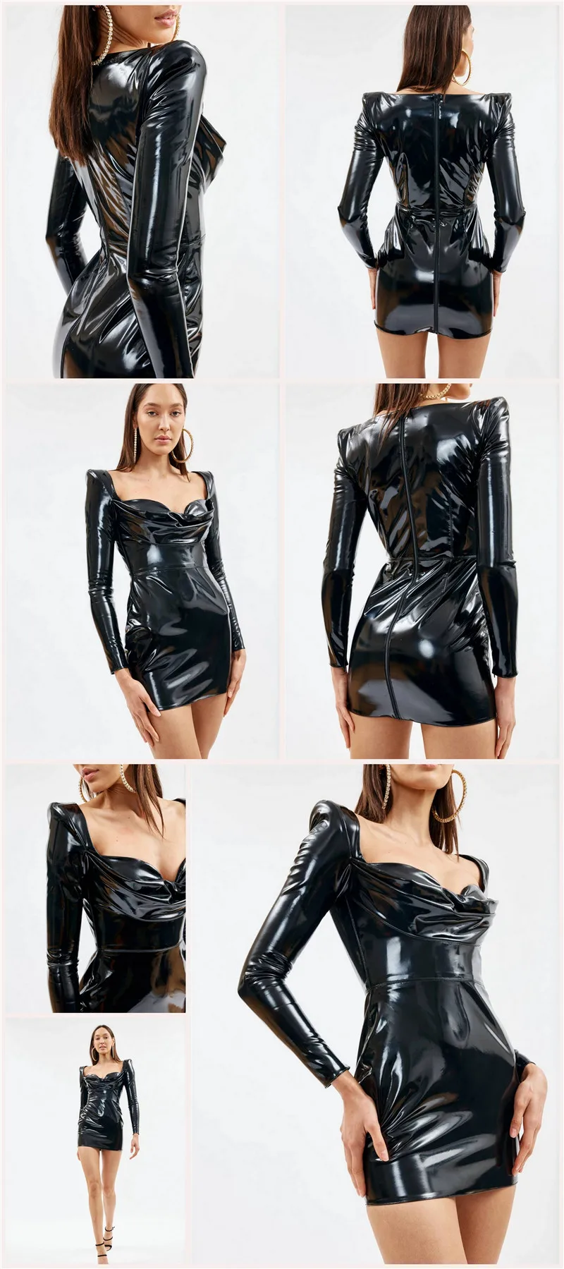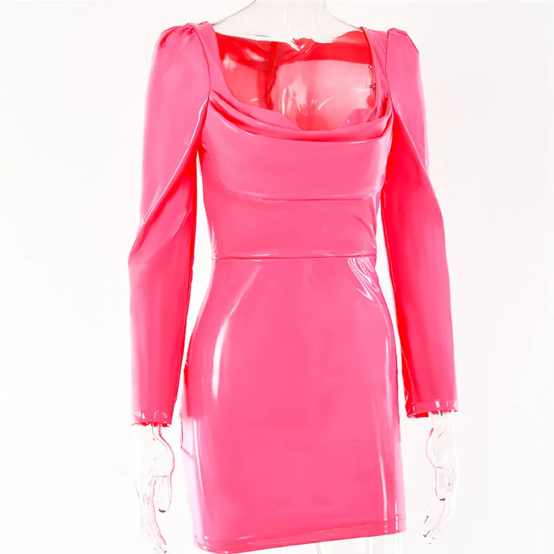 victoria’s vogue Autumn Fashion Pu Leather Bodycon Sexy Dresses Women Long Sleeve Pile Collar Zipper Dress Party Night Club Wear