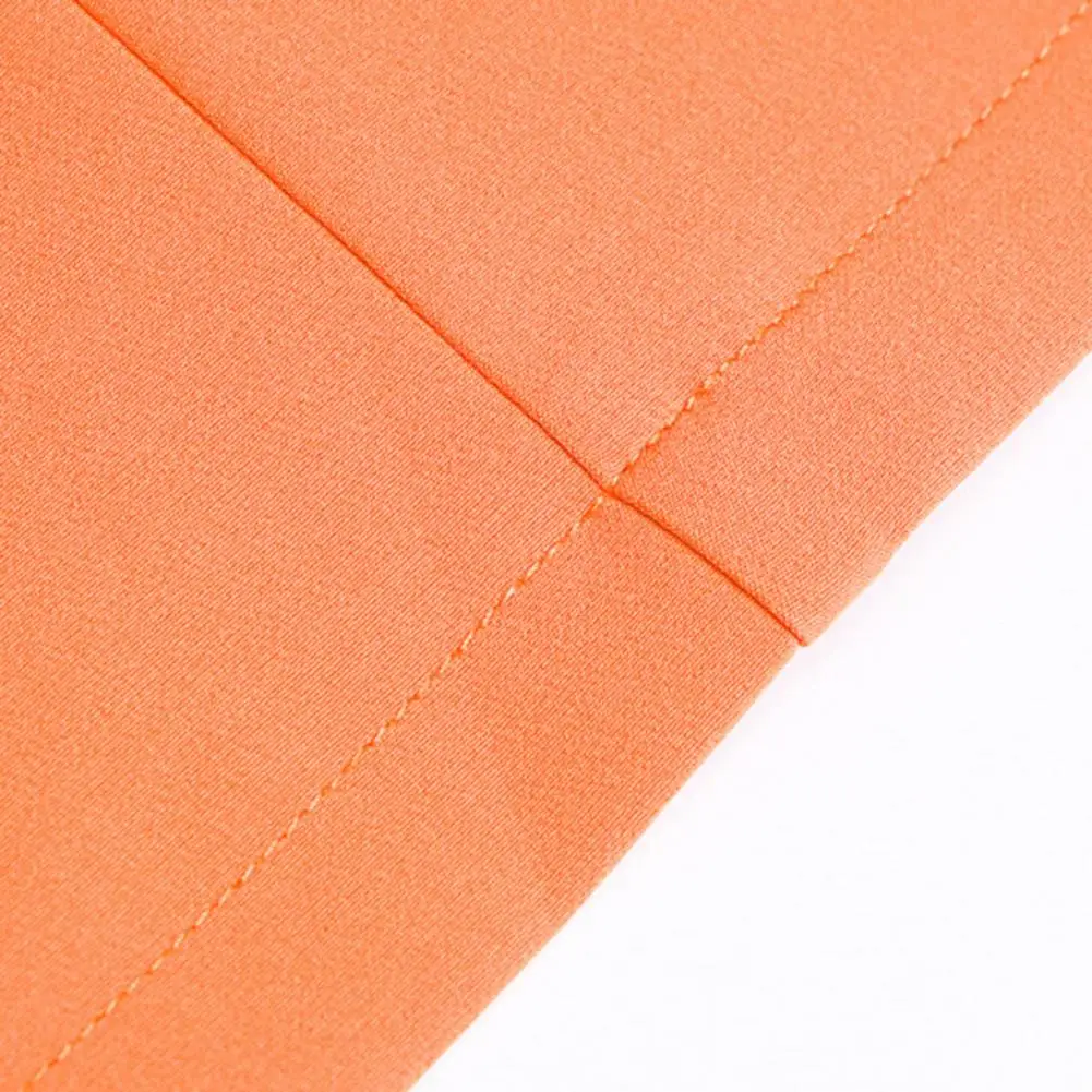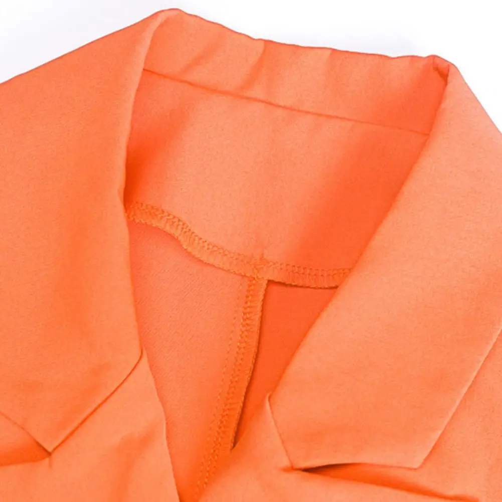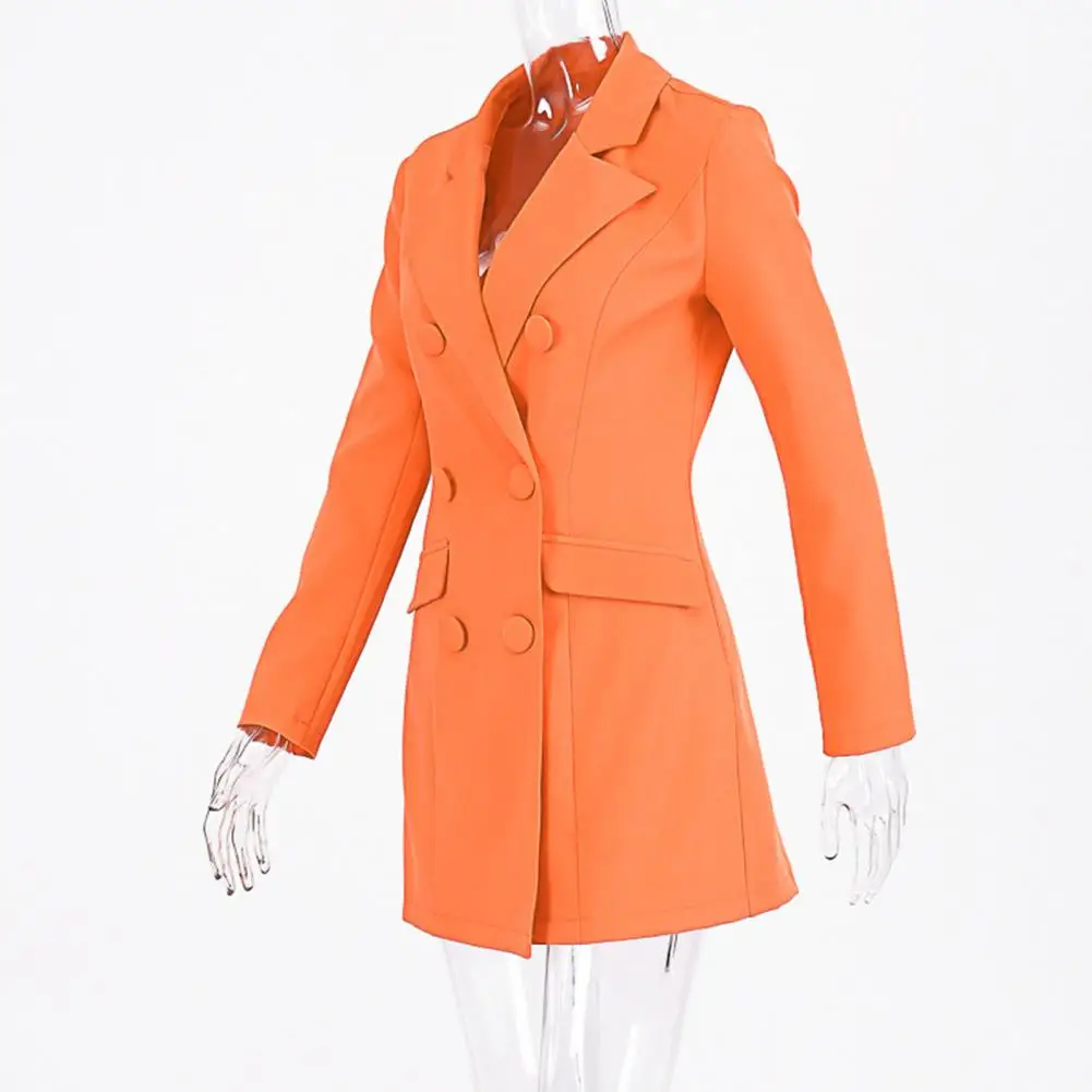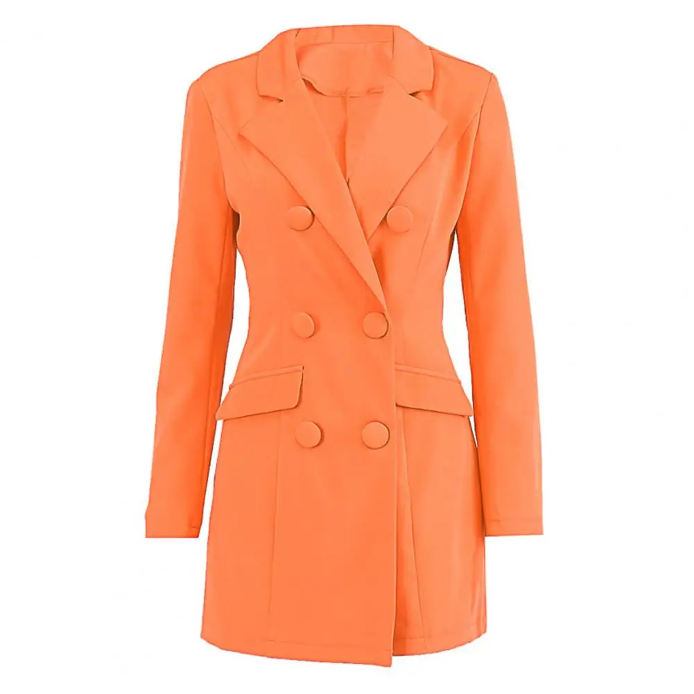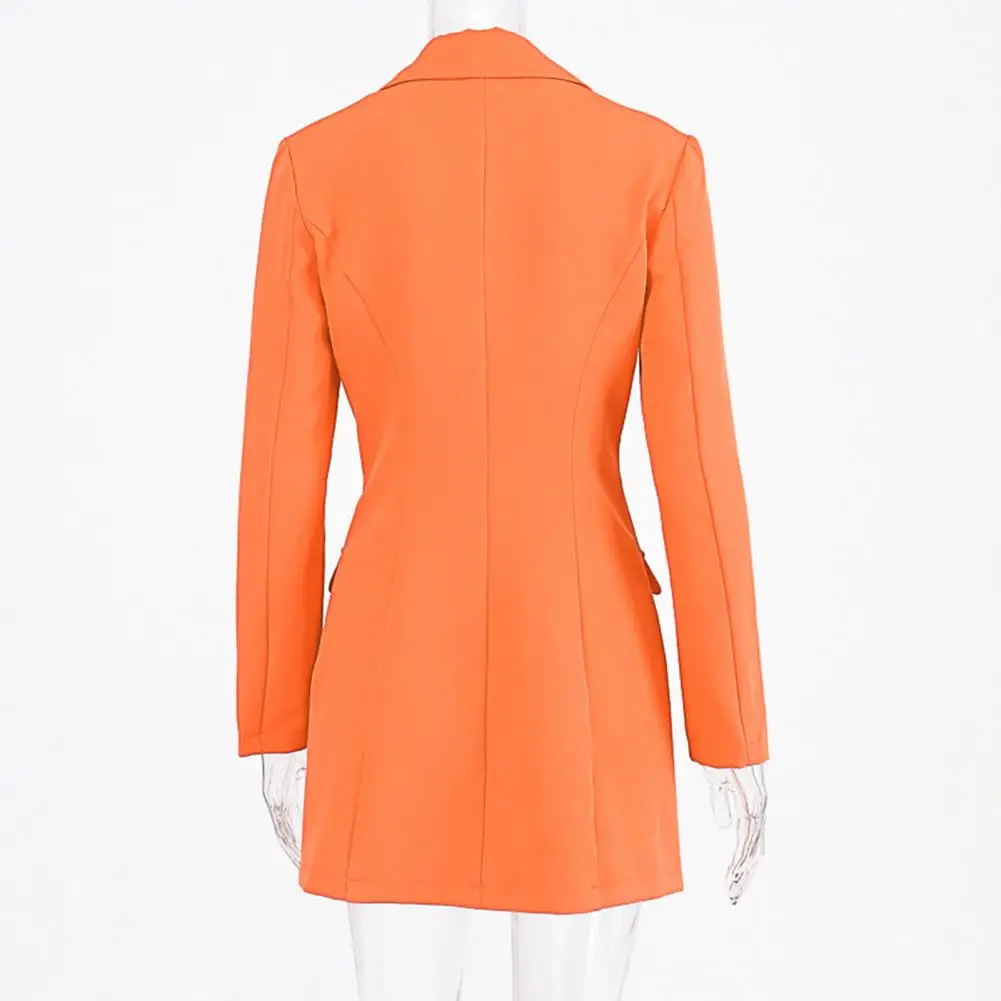 Victoria’s Vogue Autumn Orange Office Lady Blazer Lapel Long Sleeve Flap Pockets Double Breasted Mid-Length Formal Women Suit Coat Outerwear