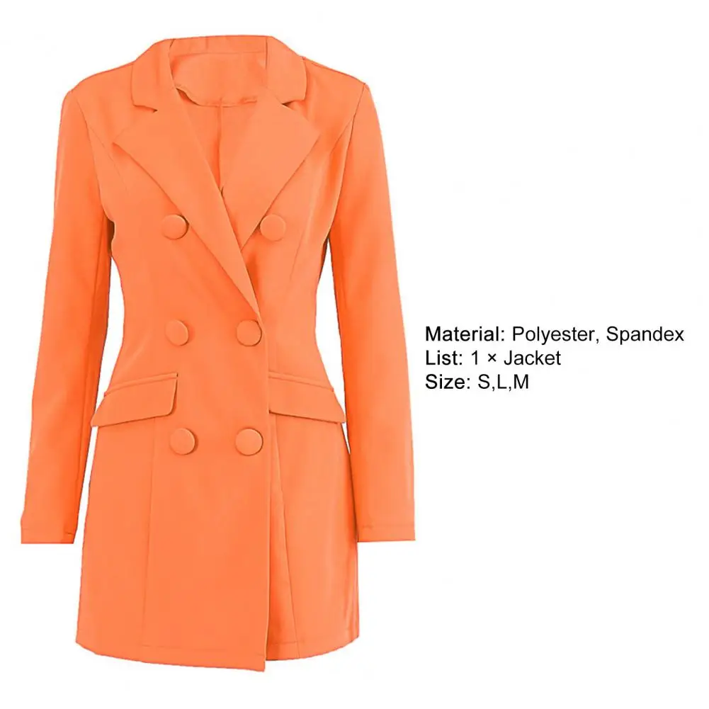 Victoria’s Vogue Autumn Orange Office Lady Blazer Lapel Long Sleeve Flap Pockets Double Breasted Mid-Length Formal Women Suit Coat Outerwear