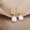 Victoria’s Vogue Baroque Pearl Earrings For Women Stainless Steel Zircon Water Droplet Steel Ring Drop Earring Wedding Party Jewelry Bijoux Femme