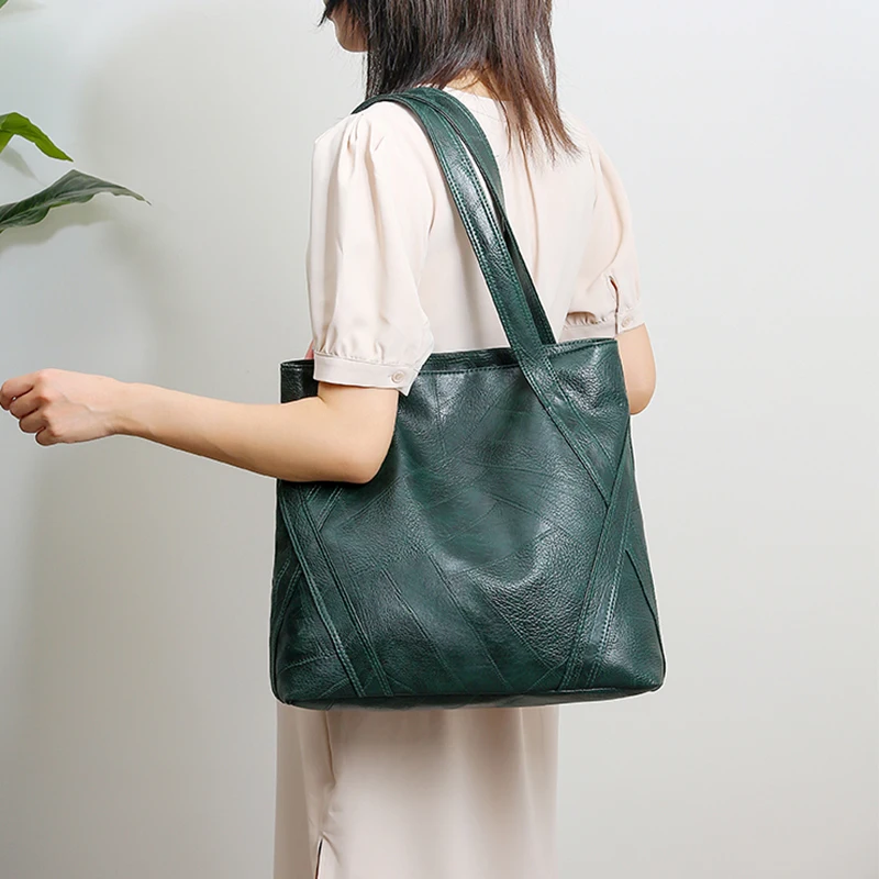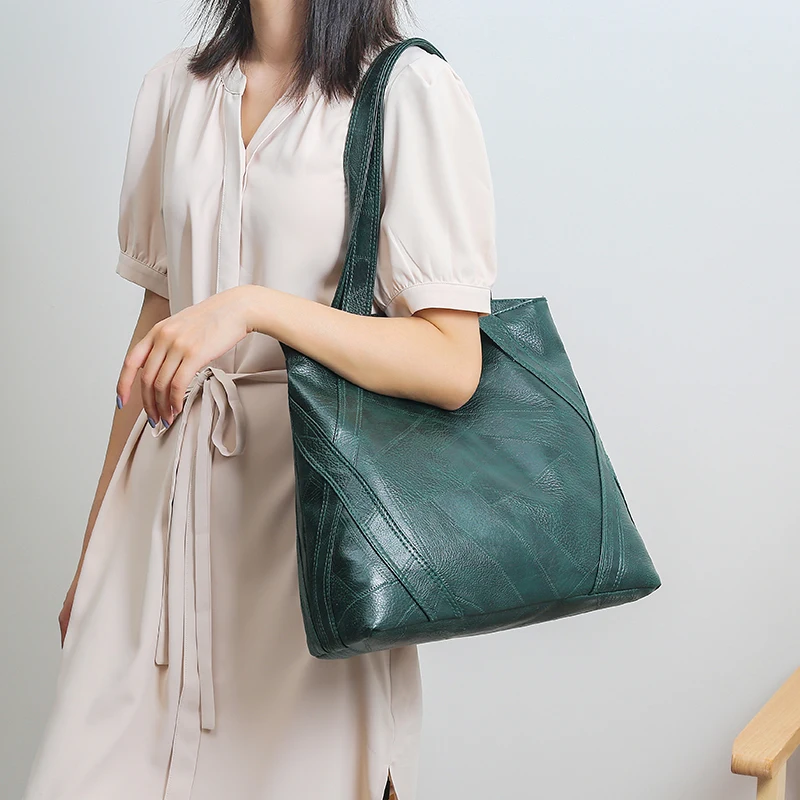 victoria’s vogue Big Casual Leather Tote Bags for Women Large Capacity Hobo Handbags Retro Patchwork Shoulder Bag Female Vintage Shopper Bag