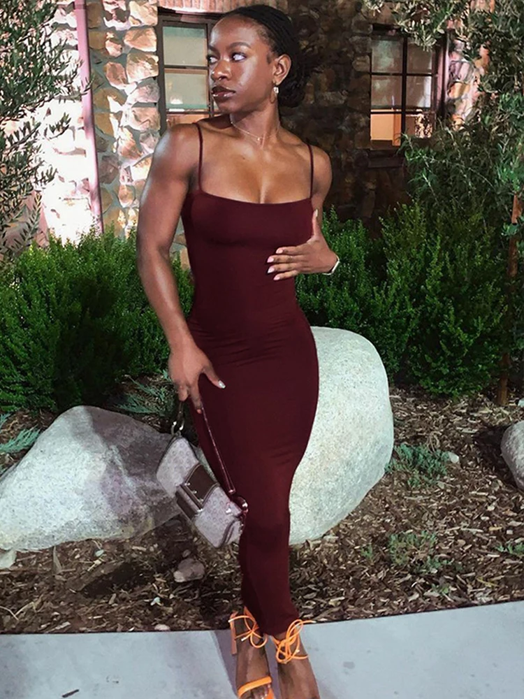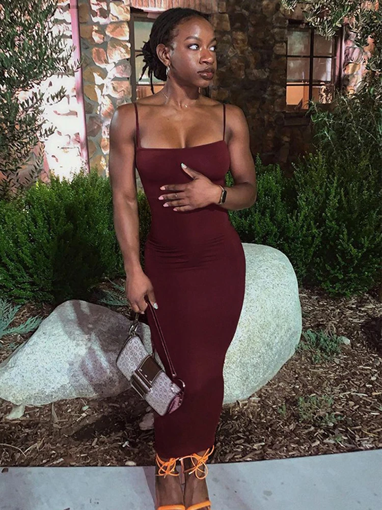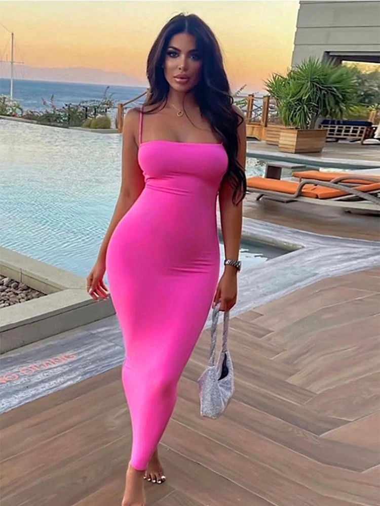 victoria’s vogue Bodycon Midi Dresses Women Solid Sleeveless Backless Nightclub Elegant Streetwear Holiday Ladies Long Strapdress