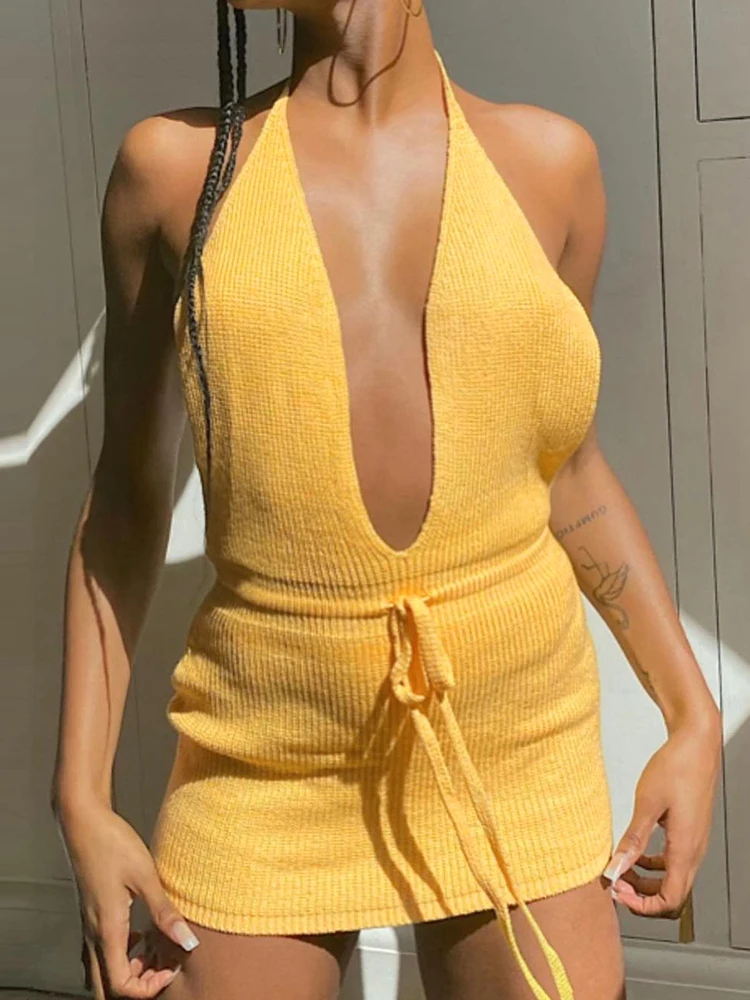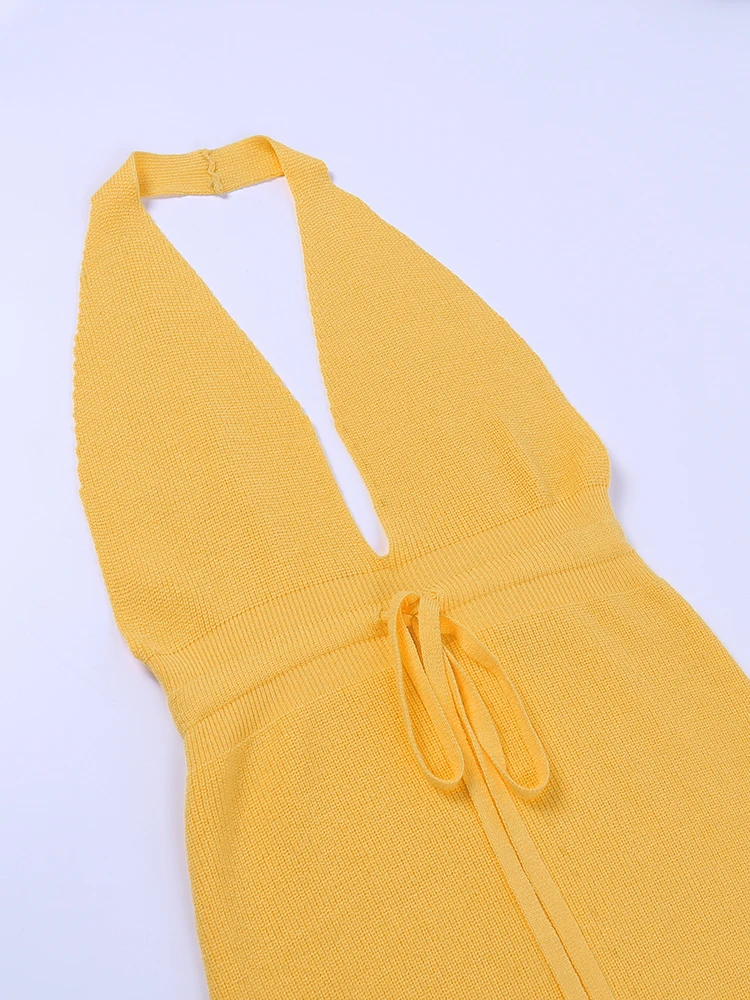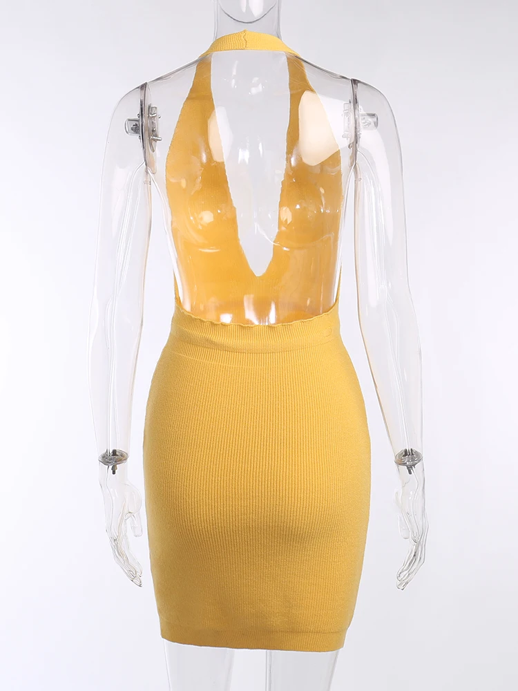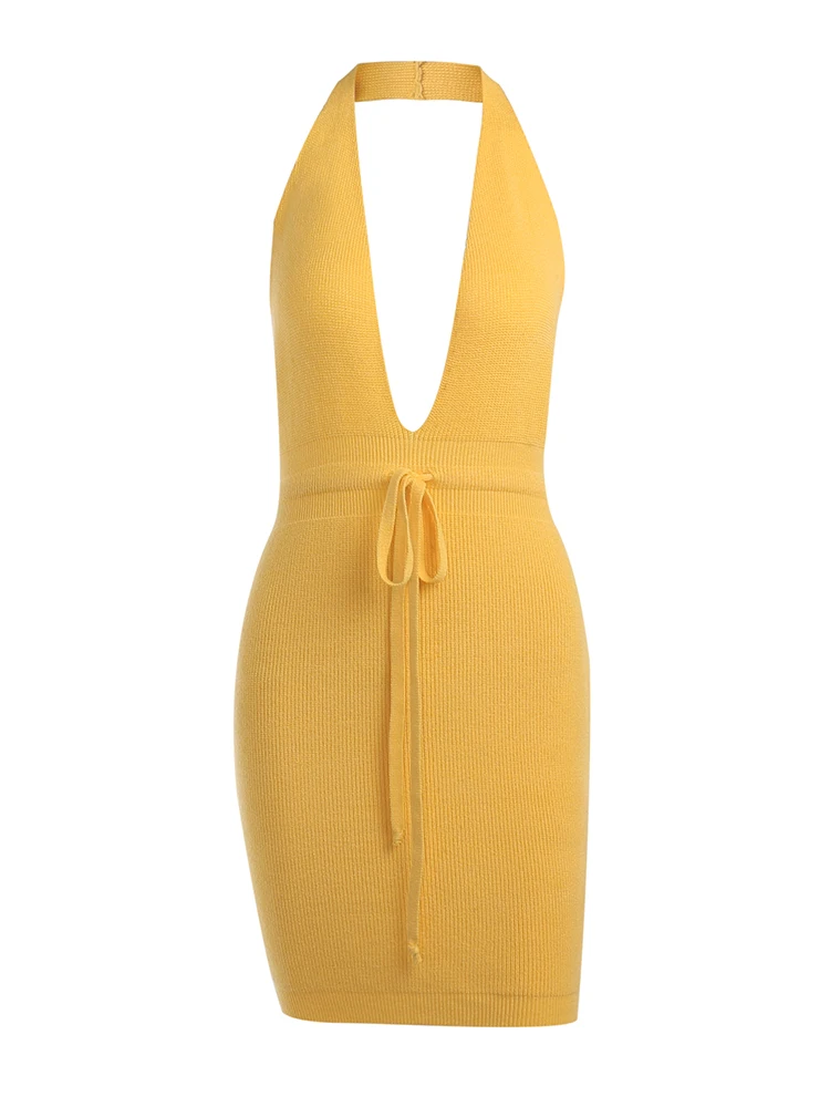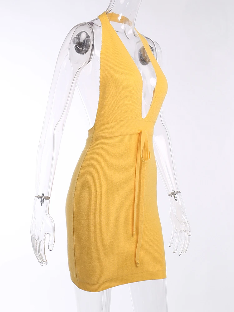 victoria’s vogue Bodycon Mini Dress Bandage Sexy Backless Y2K Knit Deep V Neck Sleeveless Women Partywear Elegant Holiday Dresses 2022