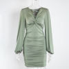victoria’s vogue Bodycon V Neck Long Sleeve Stretch Party Mini Dress Ruched Pleated Spring 2022