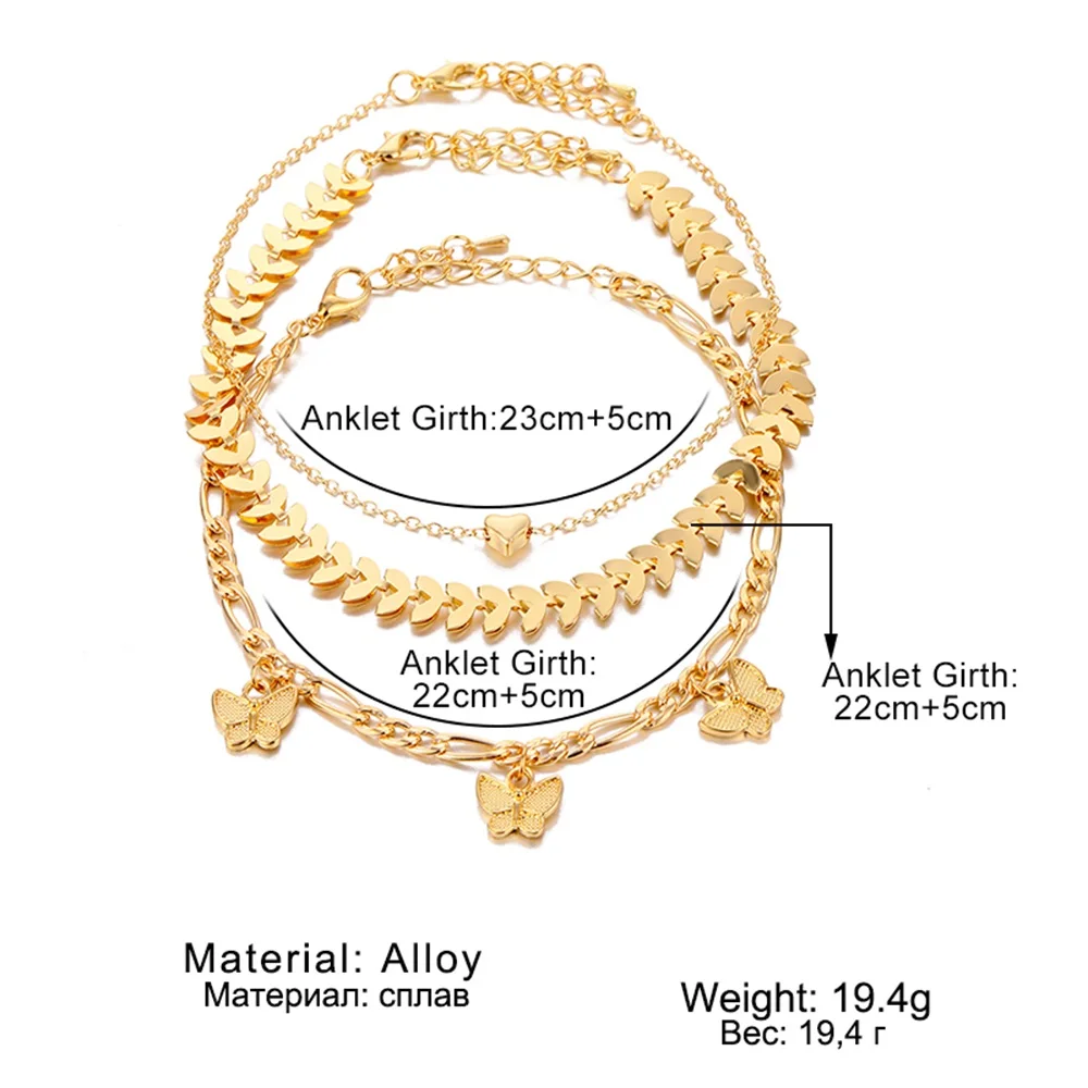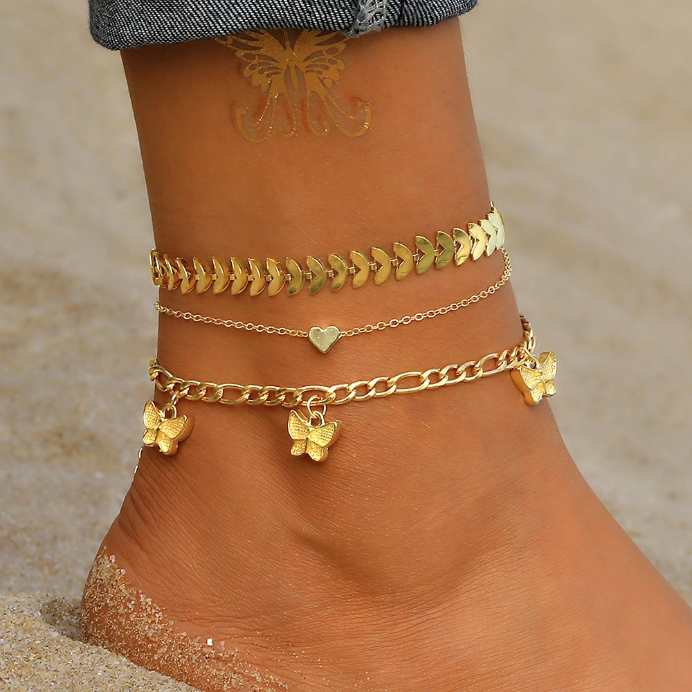 victoria’s vogue Bohemia Butterfly Heart Ankle Anklet Bracelet Set Bohemia Foot Beach Anklets Women Fashion Barefoot Chain Jewelry